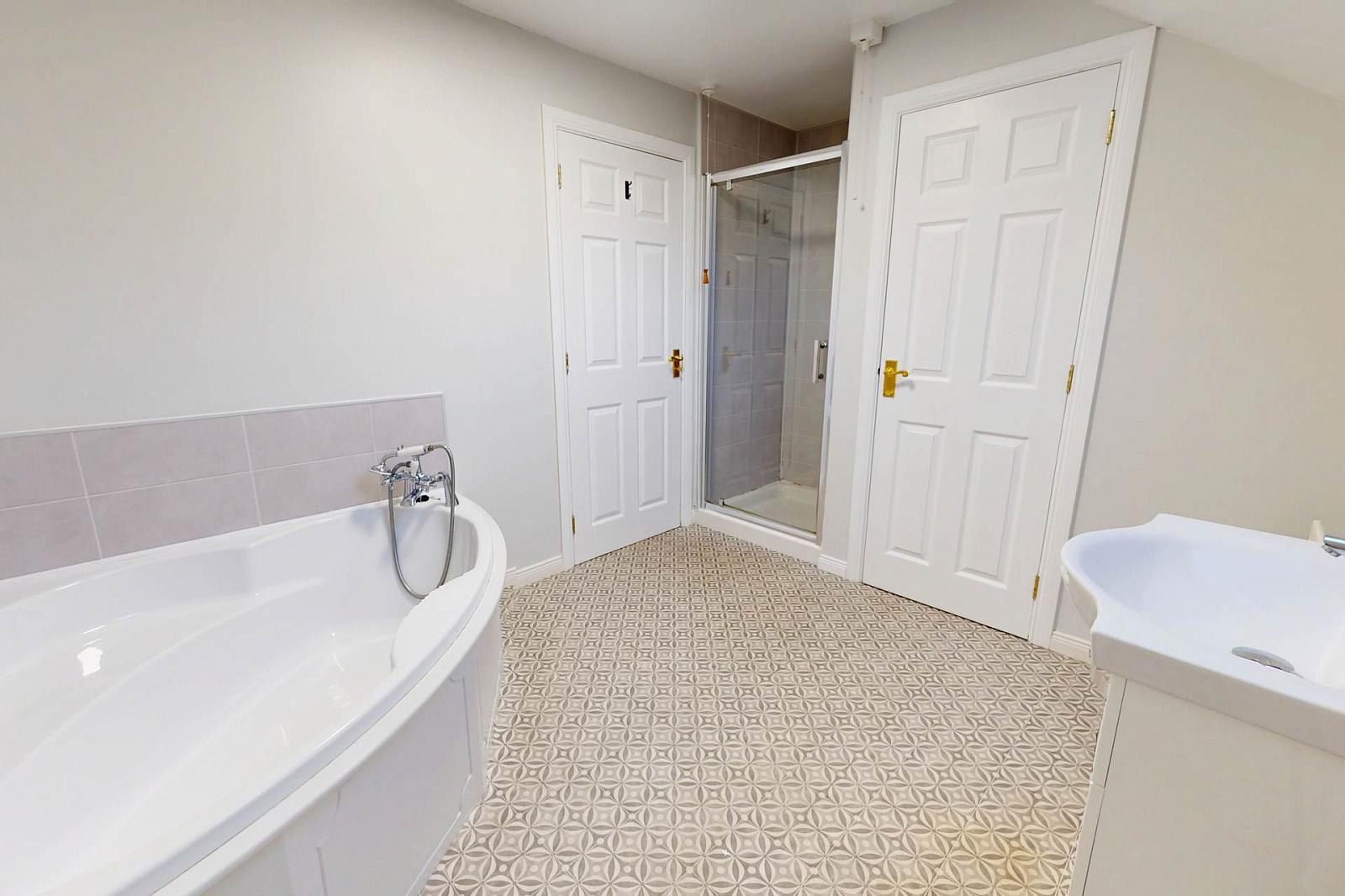 Accommodation benefits from a ground floor double bedroom with an ensuite and electric shower. There is a large master bedroom upstairs with an ensuite and power shower and two further doubles served by a main bathroom with a corner bath and separate power shower.