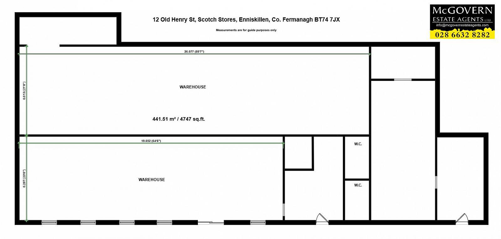 Positioned just off the Sligo Road and only minutes from Enniskillen town centre, this substantial 5,000 sq ft commercial property offers excellent accessibility and strong business visibility. Forming part of the iconic Old Scotch Stores landmark, the building benefits from a recognised and established location.