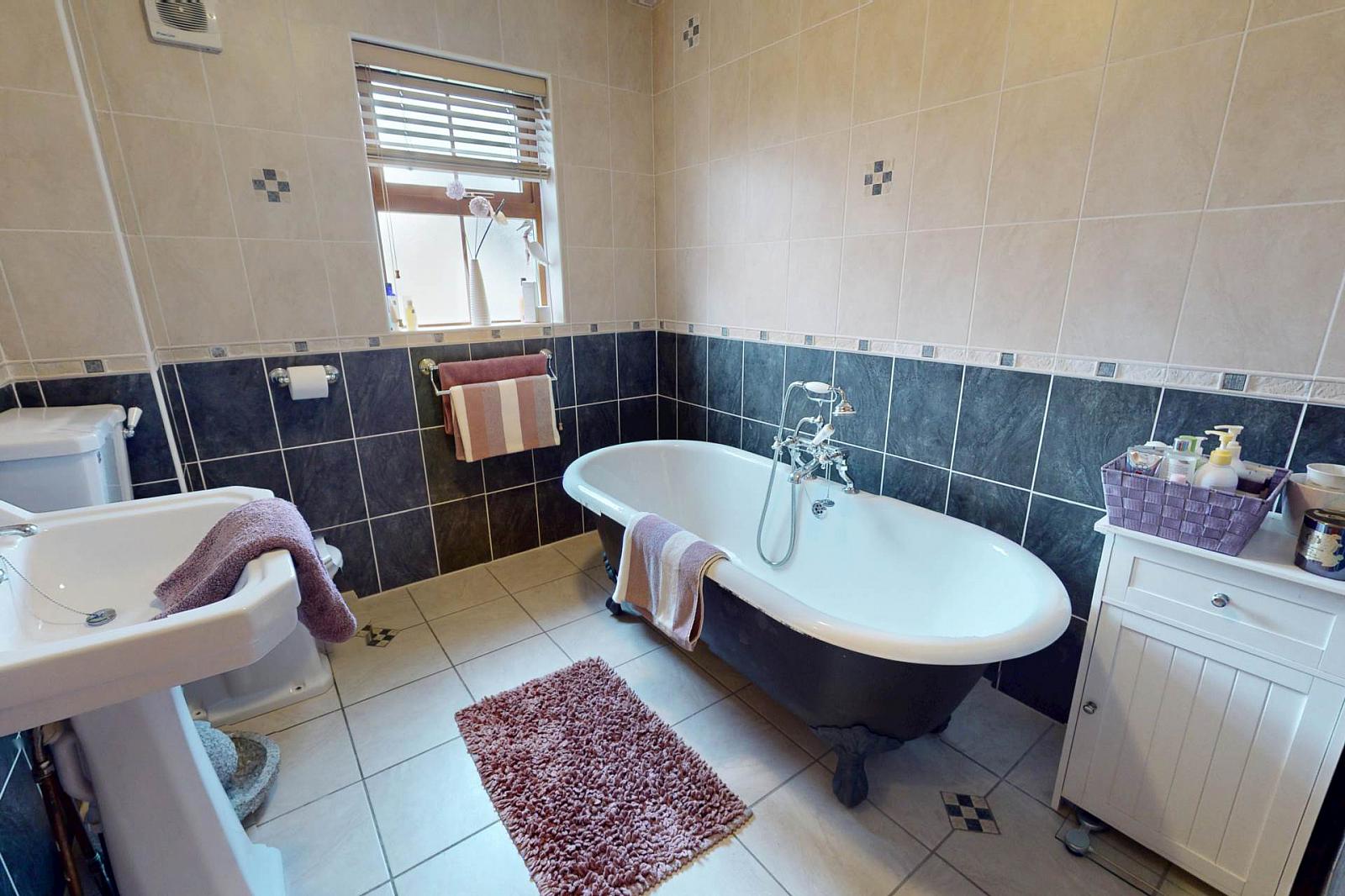 Upstairs, there are five well proportioned bedrooms, two with ensuites, plus a modern family bathroom with standalone bath and heated radiator four bathrooms in total.
