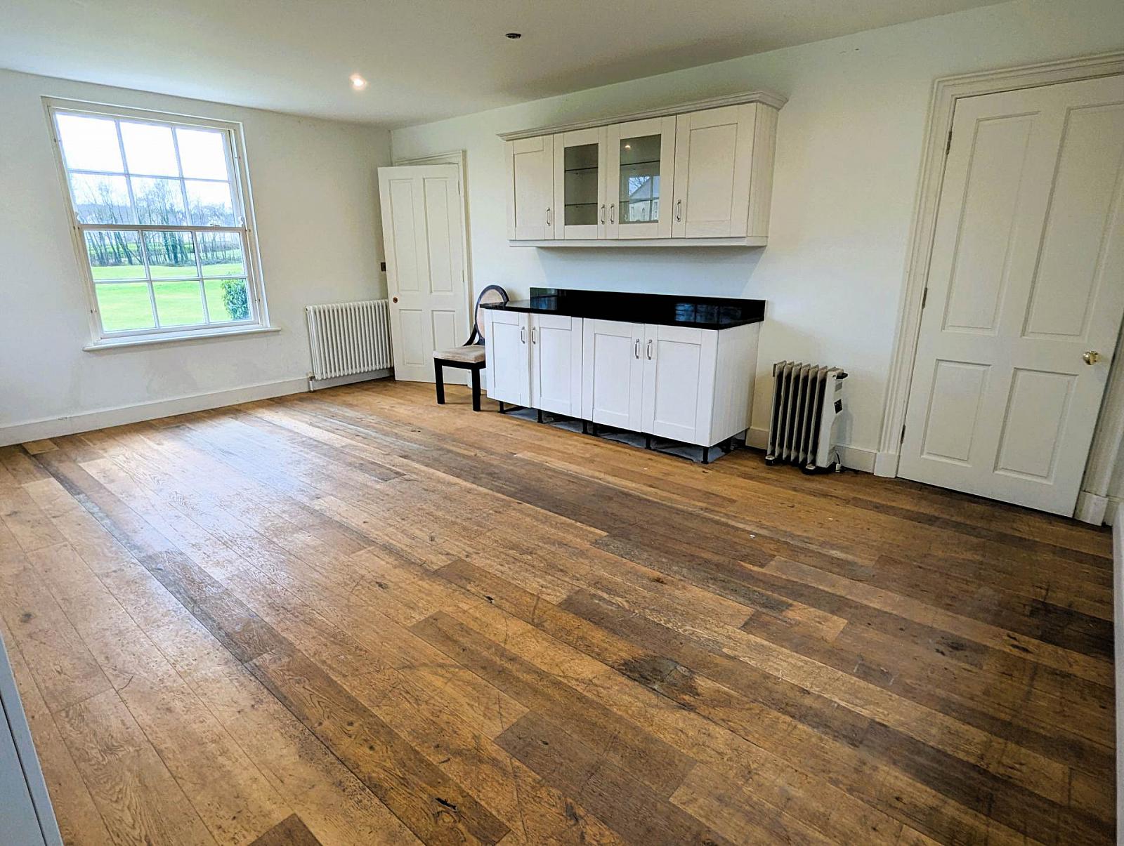 - Spacious living room, ready for installation of a gas fire