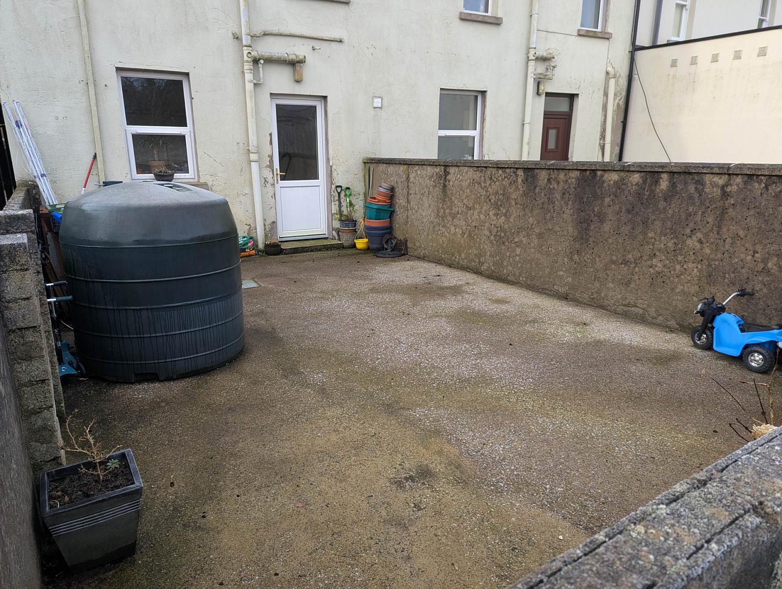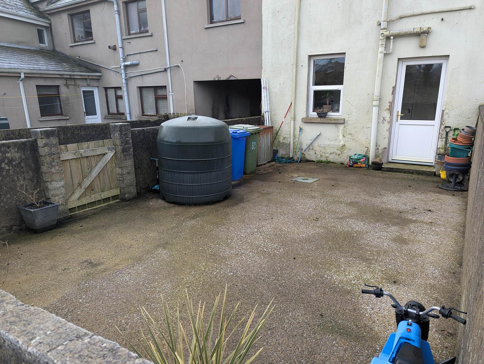 Enclosed rear concrete yard plus separate garden area