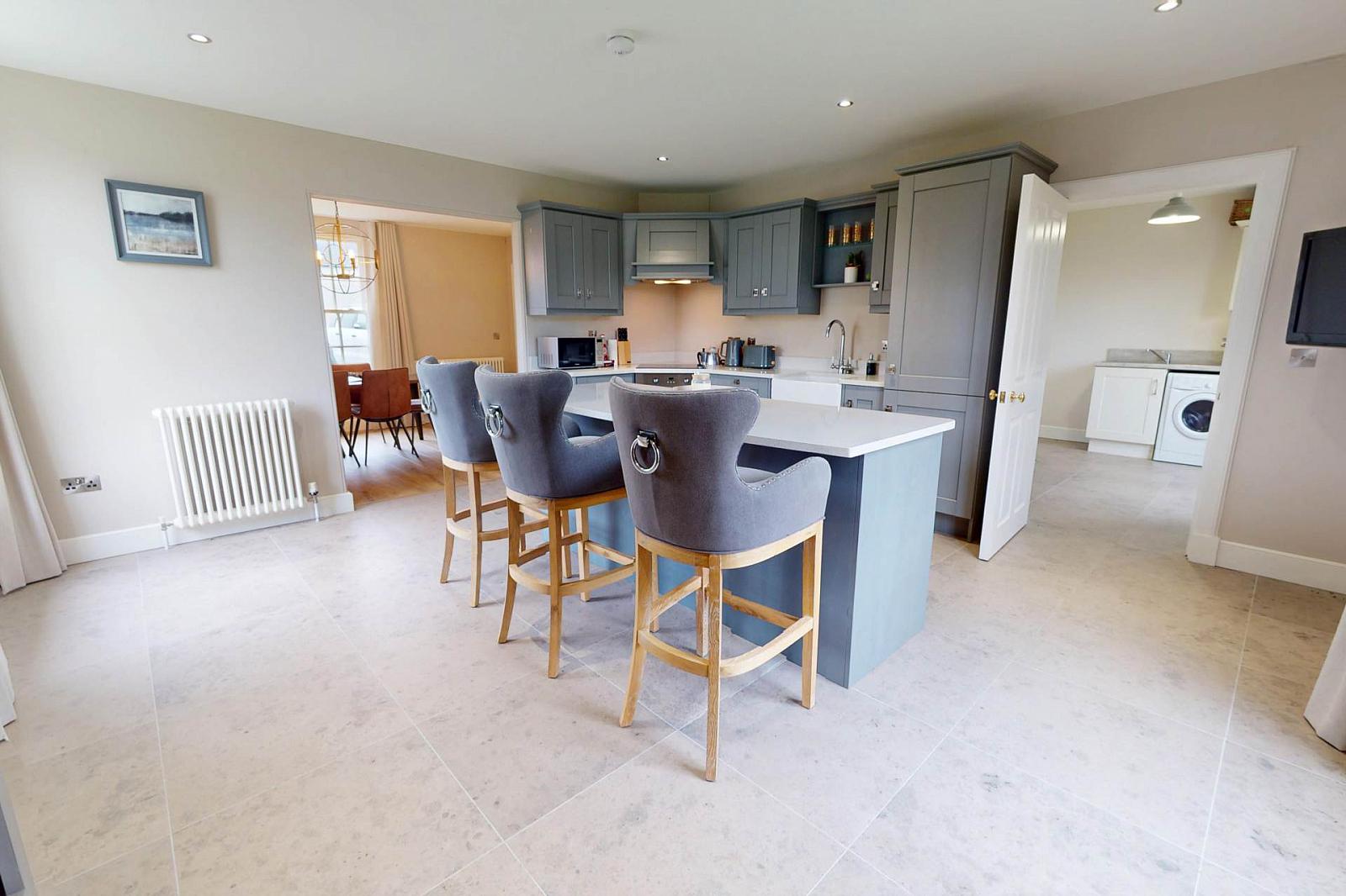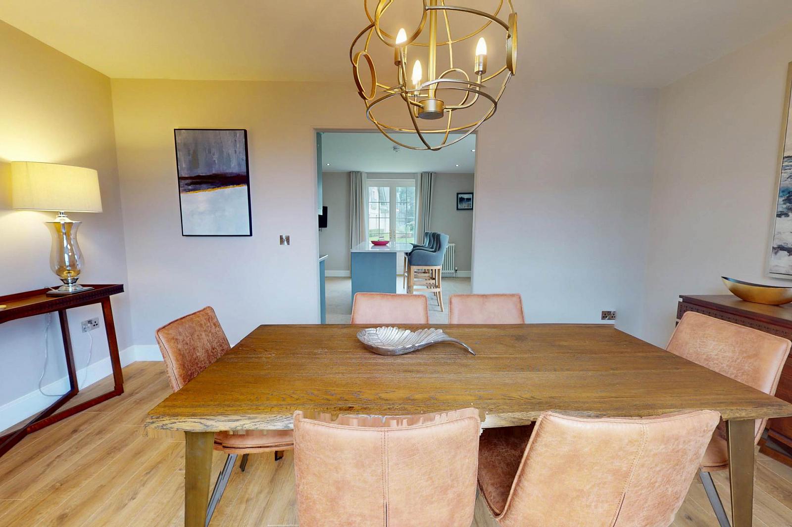 The ground floor is centred around a bright, spacious kitchen and dining area with a quality finish and plenty of natural light. The large living room with gas fire, creates an ideal space for everyday family use or entertaining with an adjoined separate snug providing a second reception room or home office, and the utility room and ground floor WC add practical convenience.
