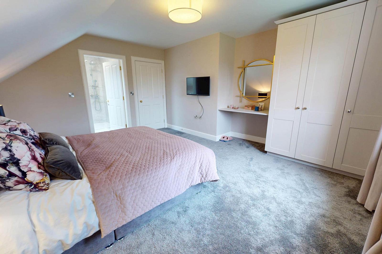 Upstairs, the house offers four well proportioned double bedrooms, including a main bedroom with private ensuite. A modern family bathroom and a wide, open landing complete the layout, giving the upper floor a comfortable, airy feel.
