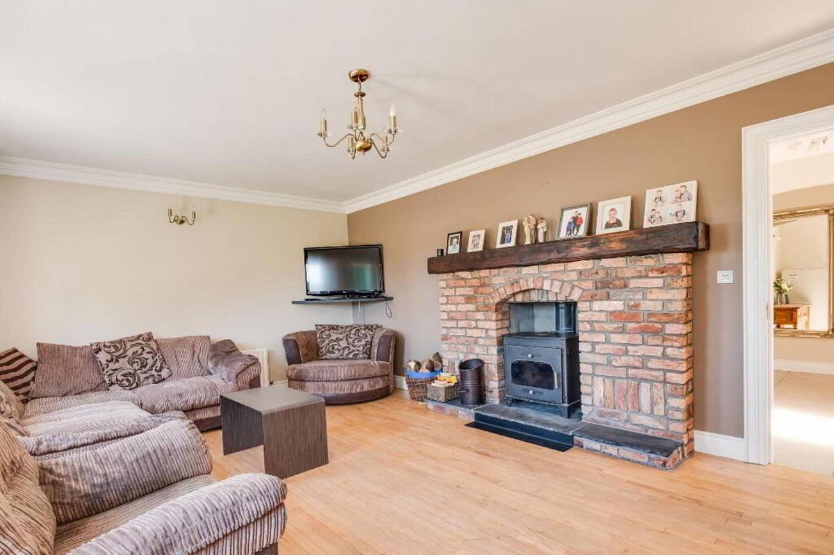 Multi fuel stove linked to heating system, feature brickwork fireplace surround with sleeper mantle, hardwood flooring, ceiling cornice.