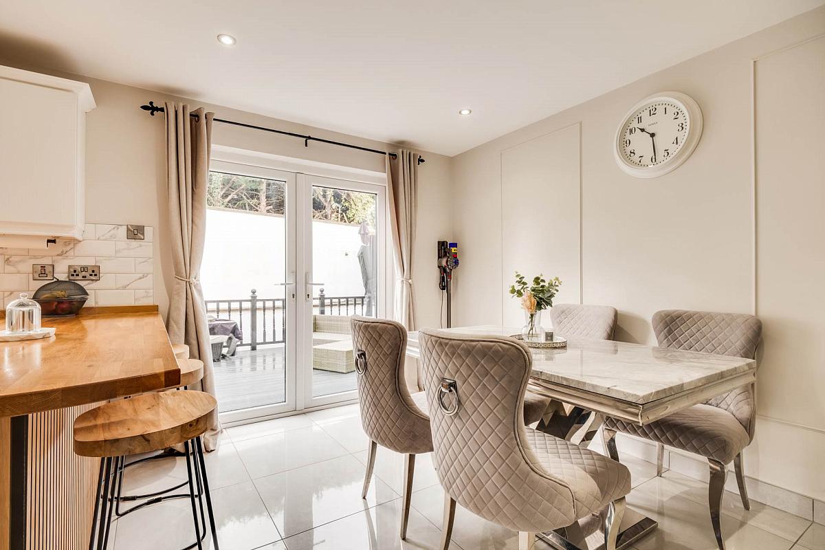 Occupying a choice corner site, the property is further enhanced by its excellent external provision, including additional parking and a neat garden to the front. To the rear lies an enclosed, south facing garden that affords a high degree of privacy, featuring a decking area easily accessed from the dining area and adjoining lawn, creating an ideal setting. This attractive outdoor space is further complemented by the garden studio, a highly versatile addition suitable for a home office, gym, or summer house, adding both lifestyle appeal and practical flexibility.