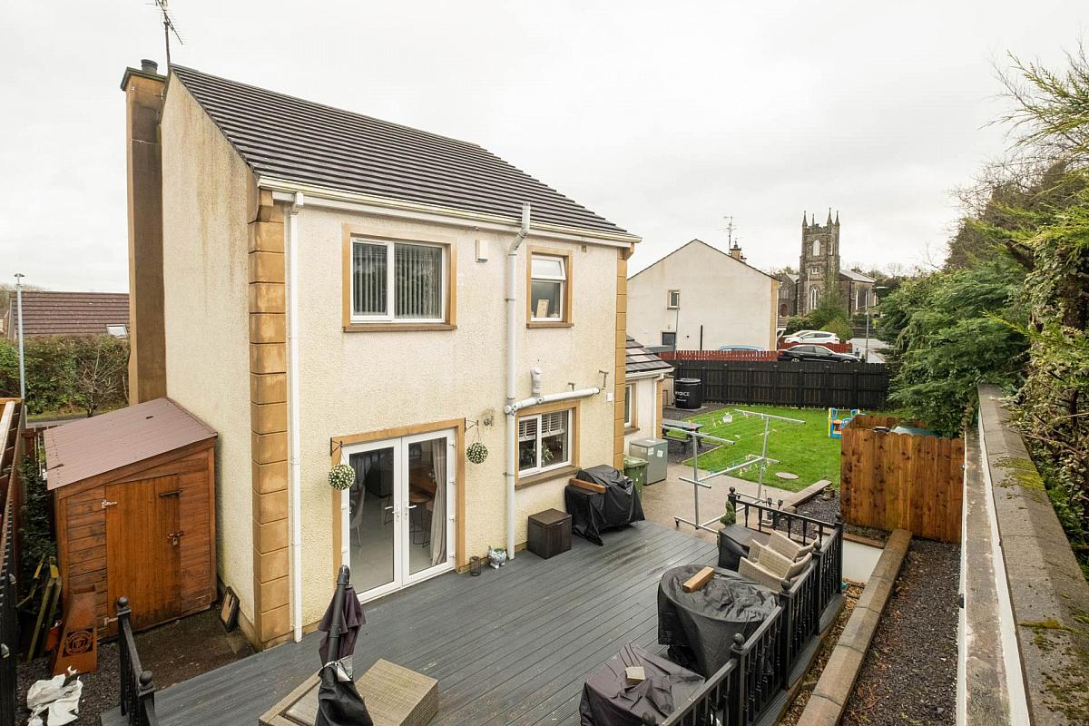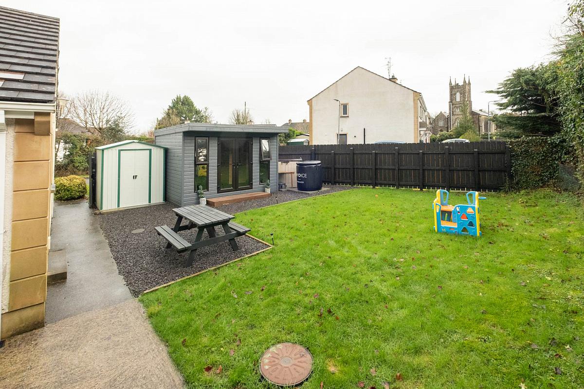Externally, the home is equally well complemented by its private and thoughtfully arranged grounds, which include additional parking, an enclosed south facing rear garden with a raised decking area perfect for outdoor relaxation, and a highly attractive garden studio offering excellent potential as a home office, gym, or summer house. All of this is set within a quiet edge of village position, just a short walk from Derrylin's Main Street and conveniently located for access to the main road network, making this an exceptional opportunity for those seeking village living with everyday convenience.