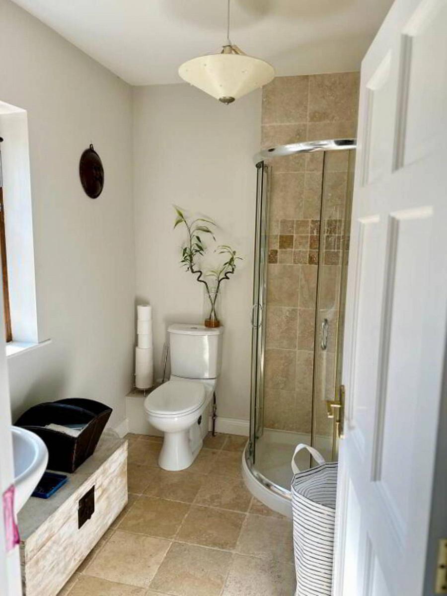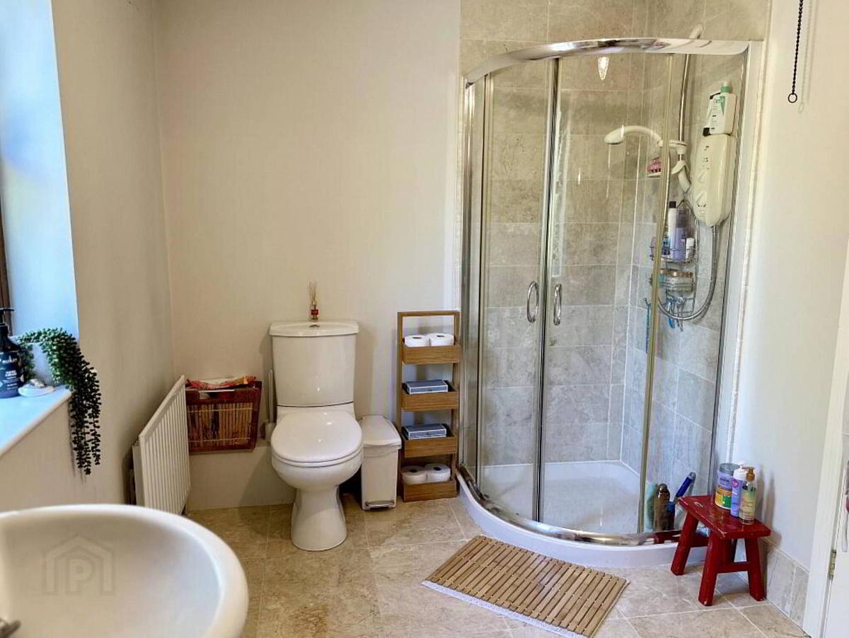 Bathroom: 11'10 x 8'6 White suite, step in shower cubicle with