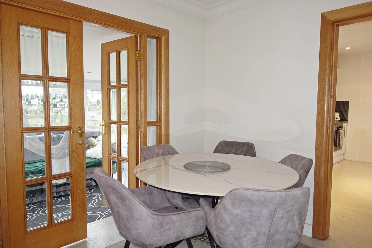 Epoxy floor covering, ceiling cornice, direct access to Kitchen and Conservatory.