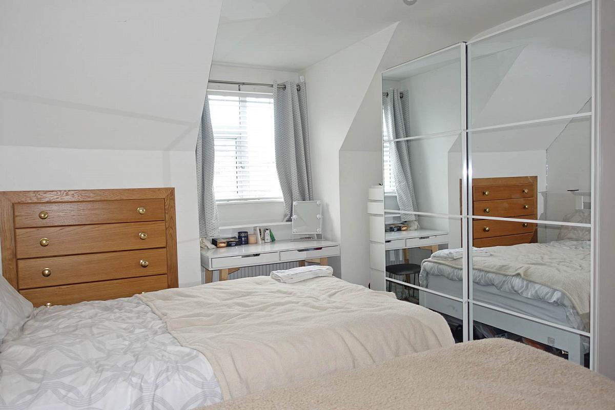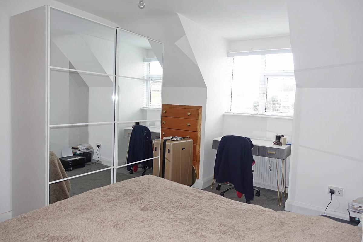 Into dormer window. 2 no. built in wardrobes, built in chest of drawers, epoxy floor covering.