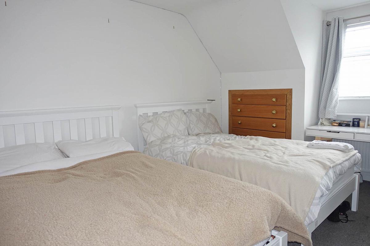 Into dormer window. 2 no built in wardrobes, built in chest of drawers, epoxy floor covering.