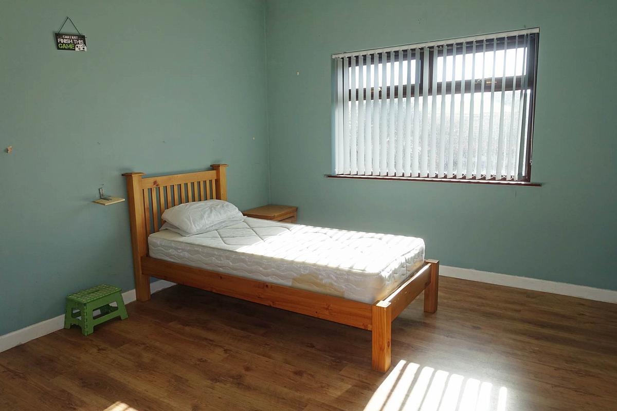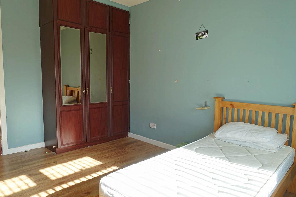 Laminate flooring, fitted triple wardrobe.