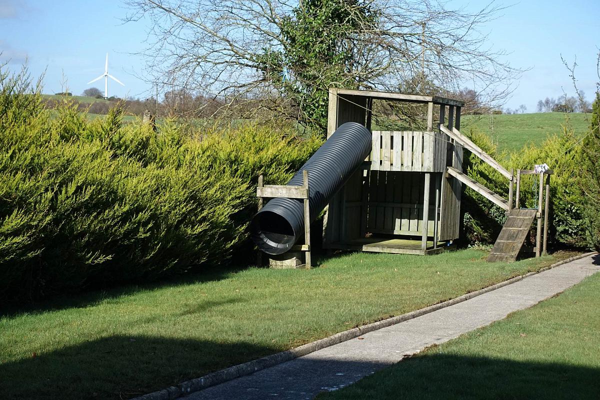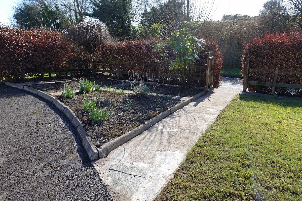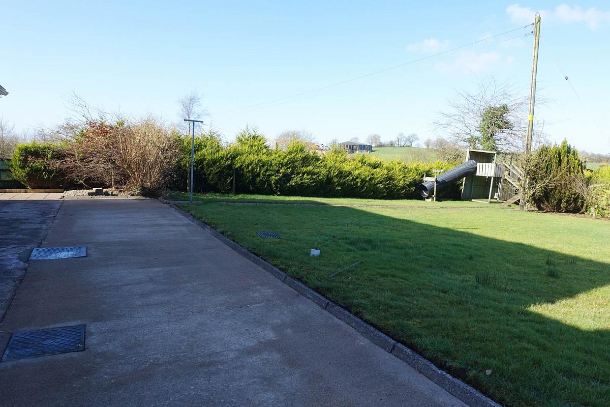 The property is set within subtly spacious grounds that enhance both its practicality and overall appeal. A generous parking area is available to the front and rear, ensuring convenience for family living, work vehicles and visiting guests alike. The front garden is laid out in lawn and bounded by a mature hedge, creating a pleasant sense of enclosure and privacy. To the rear, a notably large lawned area offers an excellent play space for children or, alternatively, presents a superb opportunity for the keen gardener to cultivate and further personalise the outdoor setting.