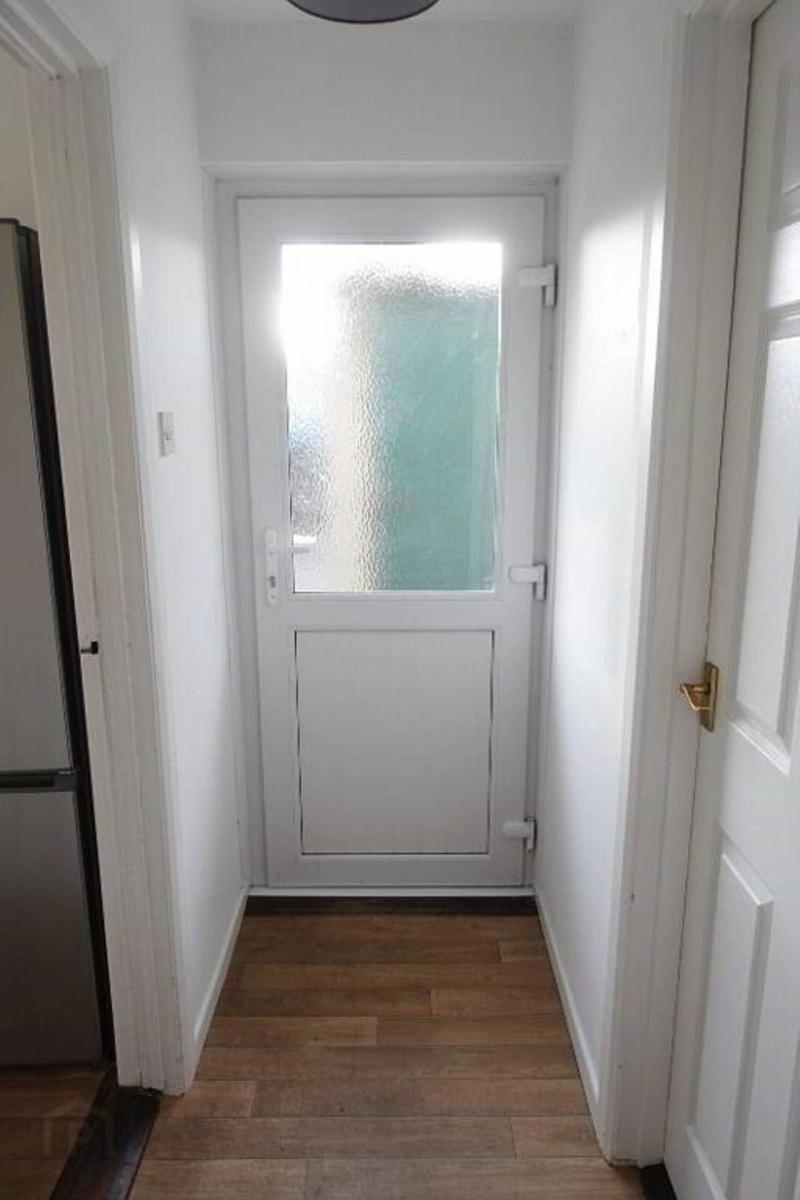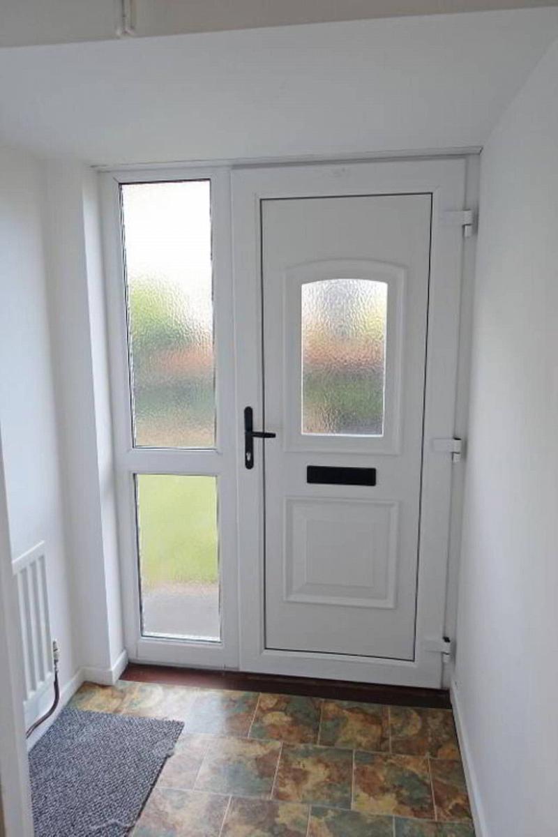 Glazed PVC exterior door with glazed inset.