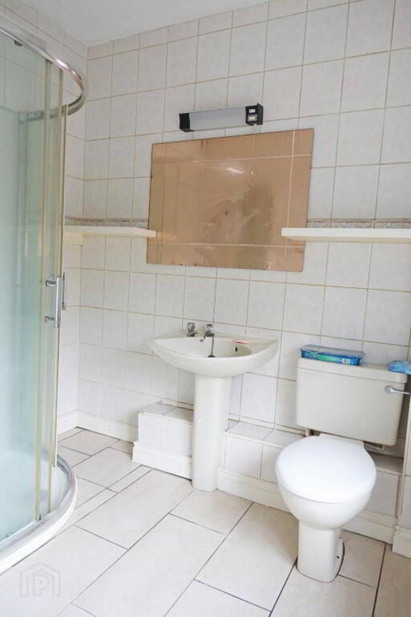 Wc, whb, step in shower cubicle with electric shower & wall cladding, part tiled walls, tiled