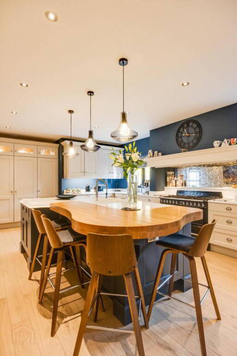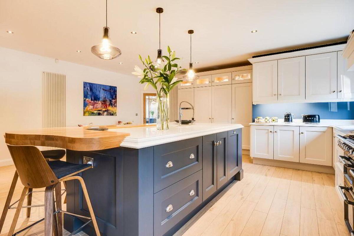 Luxury fitted kitchen with extensive features, excellent range of units including island centrepiece with ceramic sink, granite drainer & solid wood breakfast bar lip, granite work top, integrated dishwasher, larder cupboard, integrated fridge, second ceramic sink with granite drainer, 'SMEG' range cooker incl. 7 ring gas hob, electric double oven & grill, feature traditional style surround including over mantle, extractor fan, mirrored splashback, recessed lighting, tiled floor.