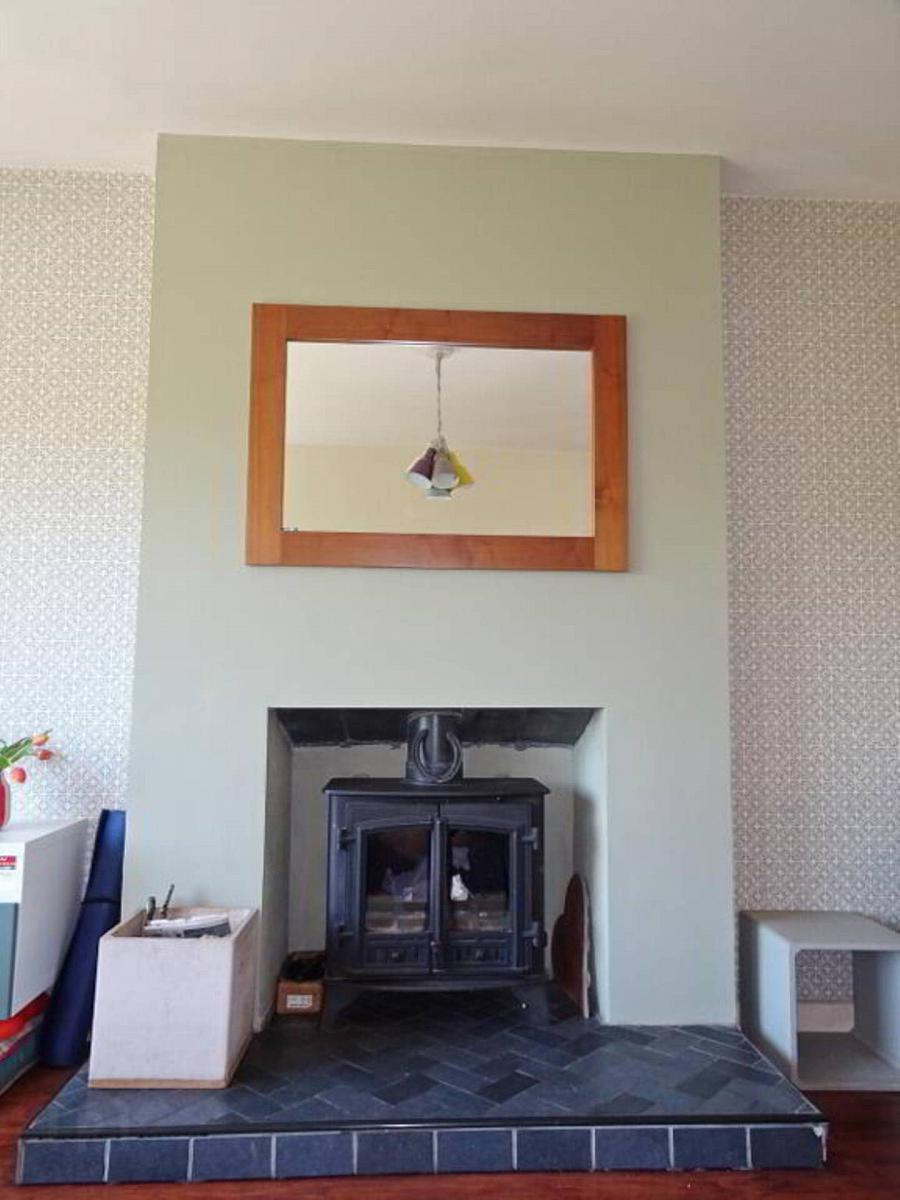 Open hearth with multi fuel stove linked to the central heating system, glazed double doors to Dining Area, wooden floor.