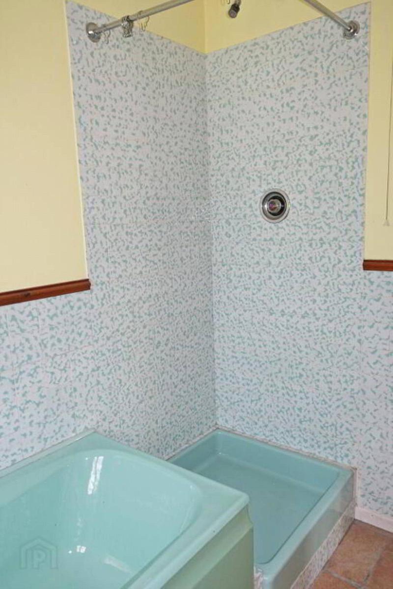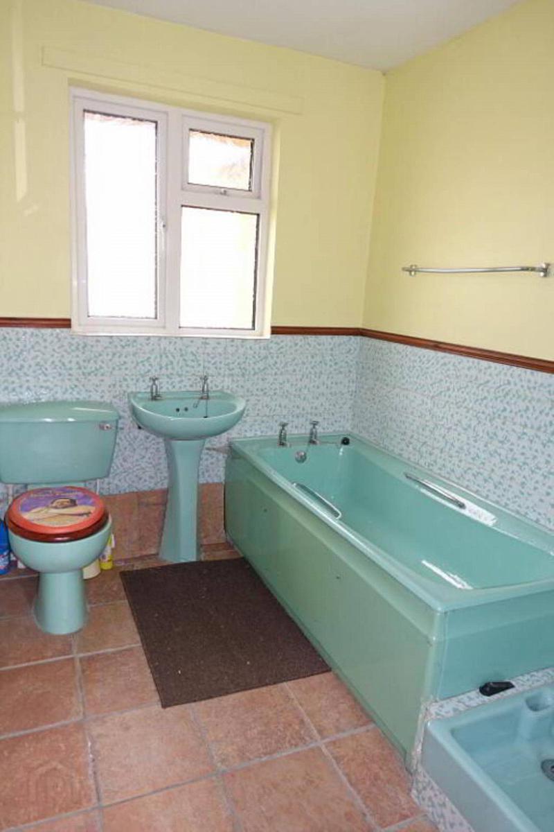 Coloured suite, thermostatically controlled shower, tiled floor & splash back.
