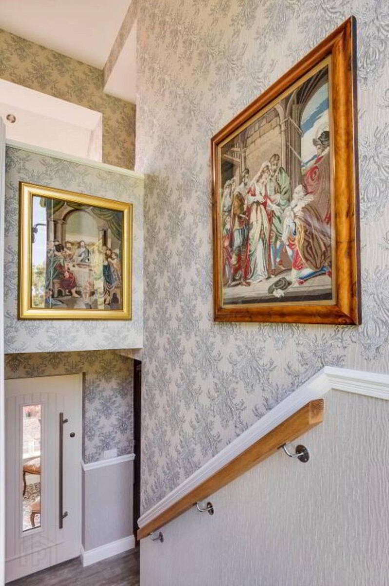 Laminate flooring, recessed lighting, dado rail, cloak room.