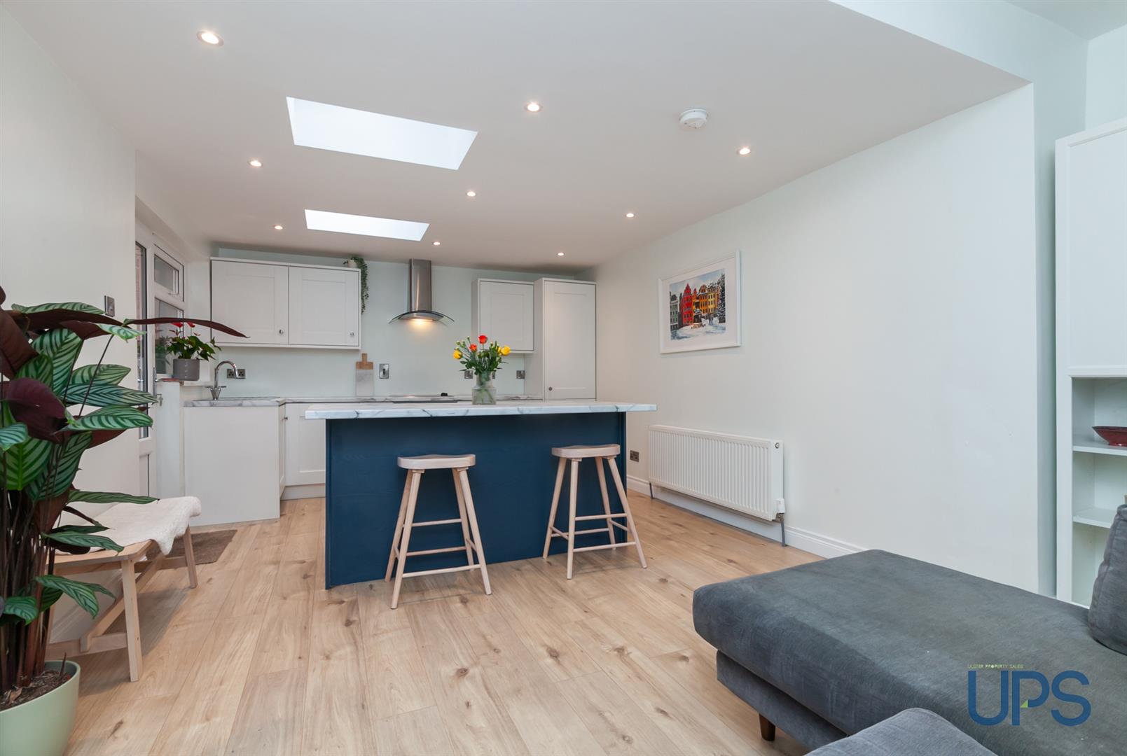 A fantastic opportunity to acquire an extended end town house, recently refurbished to offer exceptional, well appointed, comfortable living accommodation throughout. Two generous, bright, double bedrooms. Principle bedroom with feature wall paneling. Developed, floored roofspace / storage. Two reception rooms, lounge with feature bay window. Extended living / dining area open to an extended luxury fitted kitchen with feature island. Downstairs cloakroom / W.c / utility area. Upvc double glazed windows. Gas fired central heating system. Luxury white bathroom suite. Feature outside storage / enclosed and secure area / feature walled area with pedestrian ramp to front. Fantastic doorstep convenience within a short walk to an abundance of amenities on the Falls Road, transport links to include the Glider service, accessibility to the Royal Victoria Hospital, St Mary´s University College and Belfast City Hospital, the wider motorway network and arterial routes all nearby. Good fresh youthful presentation throughout. Immediate possession / Chain free. Well worth a visit.