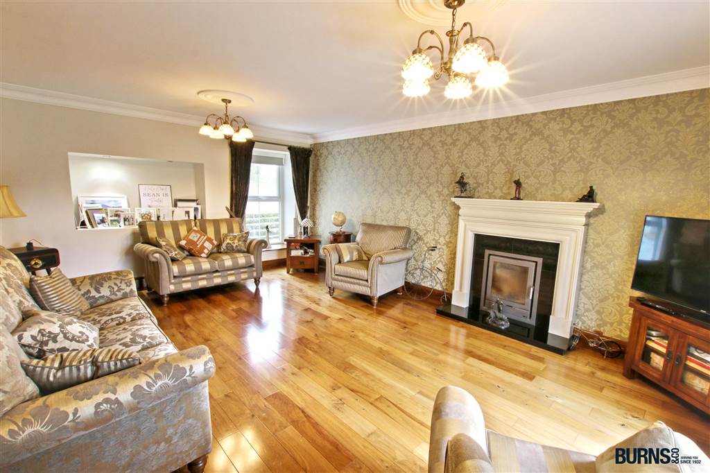 solid wooden flooring; coving; central ceiling rose; multi-fuel stove on black granite hearth with marble surround; TV point.