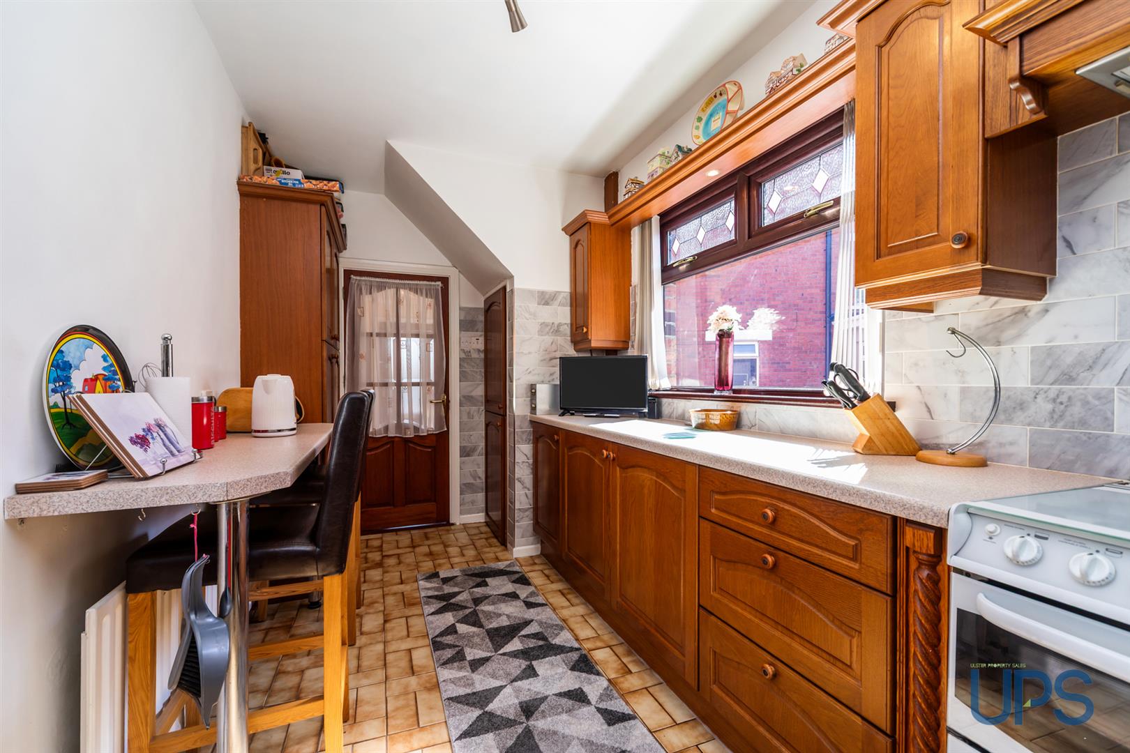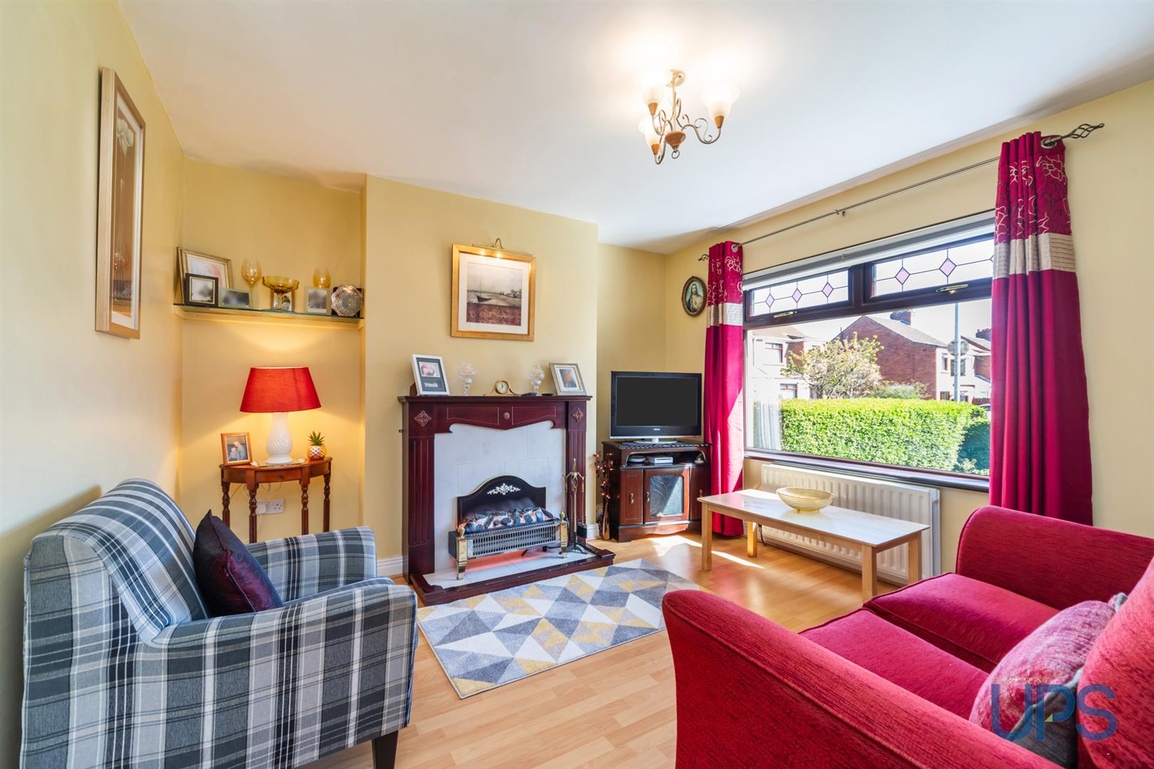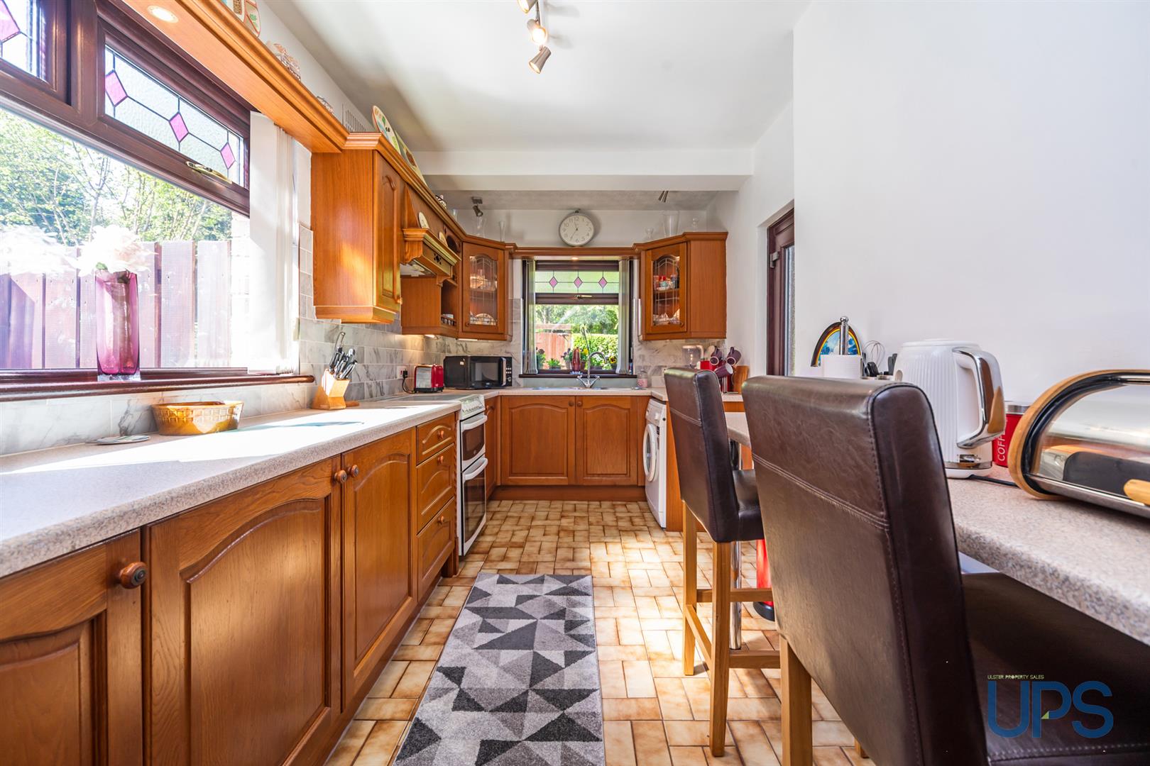 A beautiful well maintained and presented red brick extended semi detached family home within an established, private cul de sac that enjoys a magnificent landscaped site. A well appointed family home with accommodation extending to approximately 1240 Sq / ft to include; Three excellent, bright comfortable bedrooms. Two separate reception rooms. Extended luxury finished fitted kitchen with a casual dining area. Large white luxury shower suite. Developed floored and sheeted Roofspace / Storage. Upvc double glazed windows / doors / fascia also in Upvc. Oil fired central heating system. Large detached garage. Good, fresh presentation throughout. Feature internal doors / floor coverings. Extensive, private, landscaped, mature gardens. Fantastic doorstep convenience located off the established Finaghy Road North close to schools, shops, and transport links, Finaghy Railway Station and an abundance of amenities in Andersonstown to include leisure facilities, cafes, restaurants, and much more. The property also enjoys accessibility to the Upper Lisburn Road and arterial routes. A superior extended family home difficult to find in today's market. Well worth viewing.