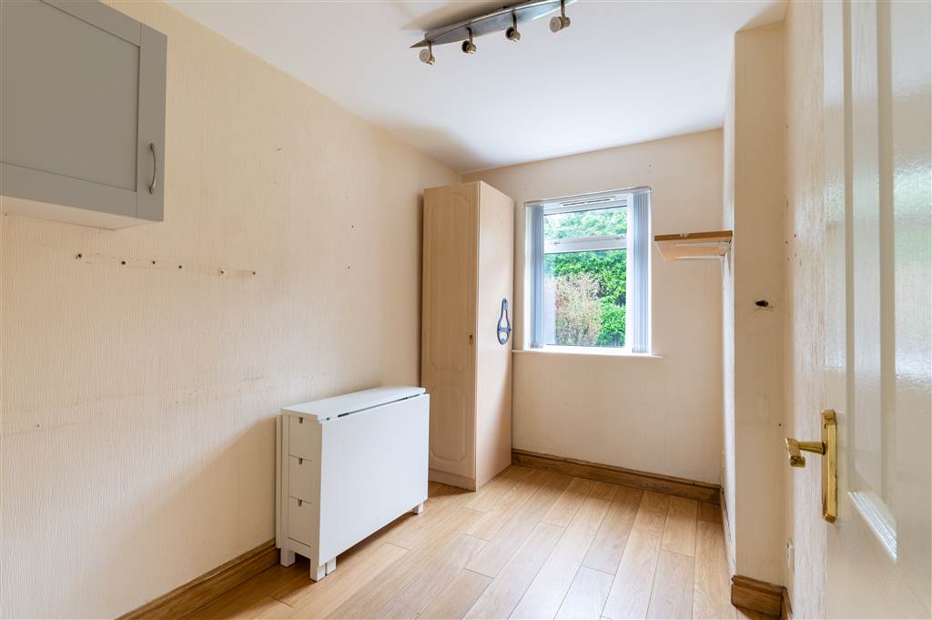 Laminate wood flooring, storage cupboard, panelled radiator.