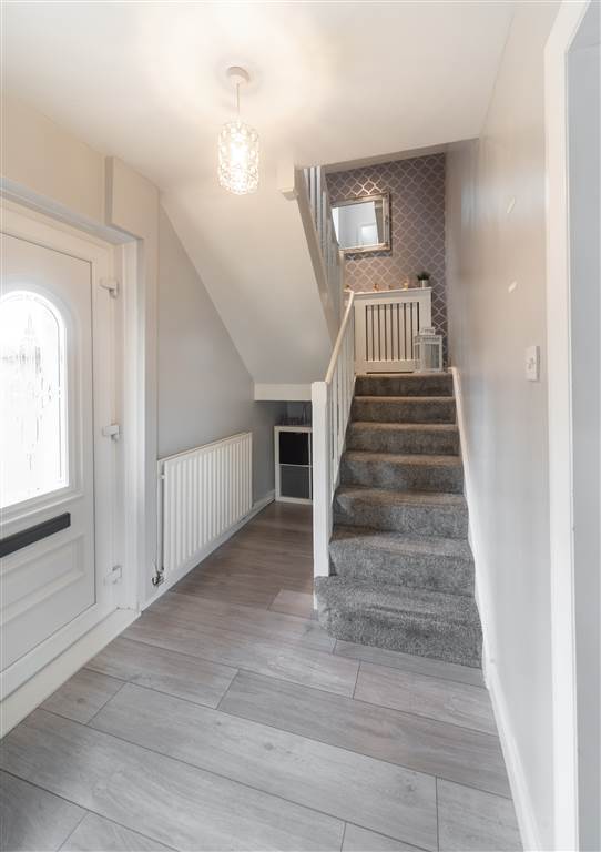 Internally this home offers modern & well appointed accommodation throughout. The ground floor comprises of a spacious lounge and a fitted kitchen with casual dining area. Two generous bedrooms and a white bathroom suite with separate W.C completes the first floor, with a further room added in the developed roofspace also. The property benefits from a modern gas fired central heating system and well kept gardens to the front & rear, perfect for those with a young family seeking additional outside space.