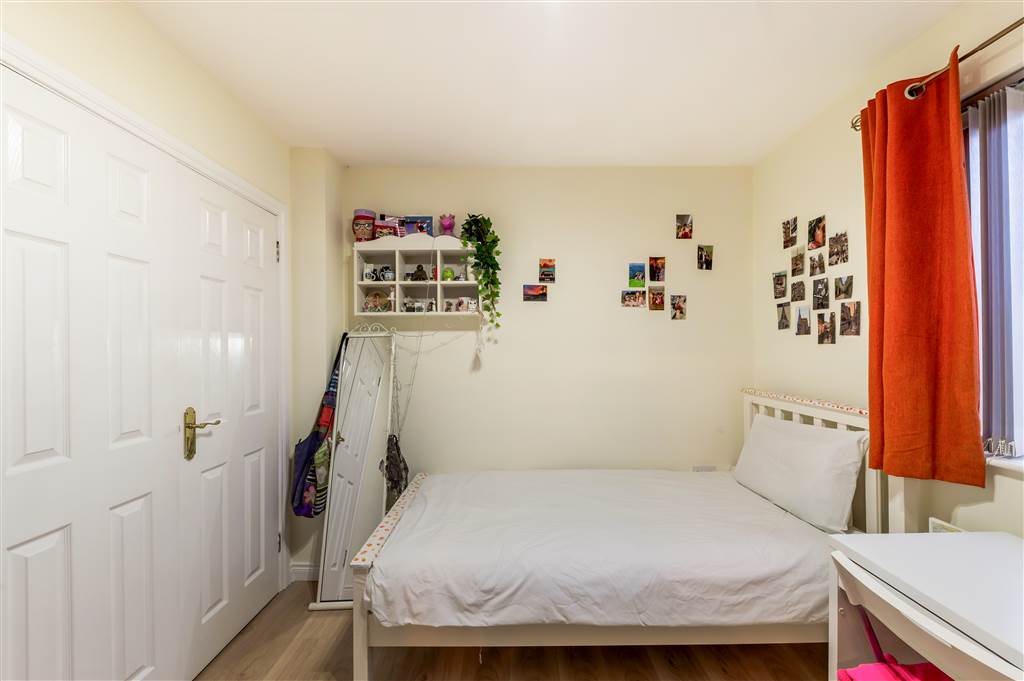 Laminate wood flooring, storage cupboard, panelled radiator.