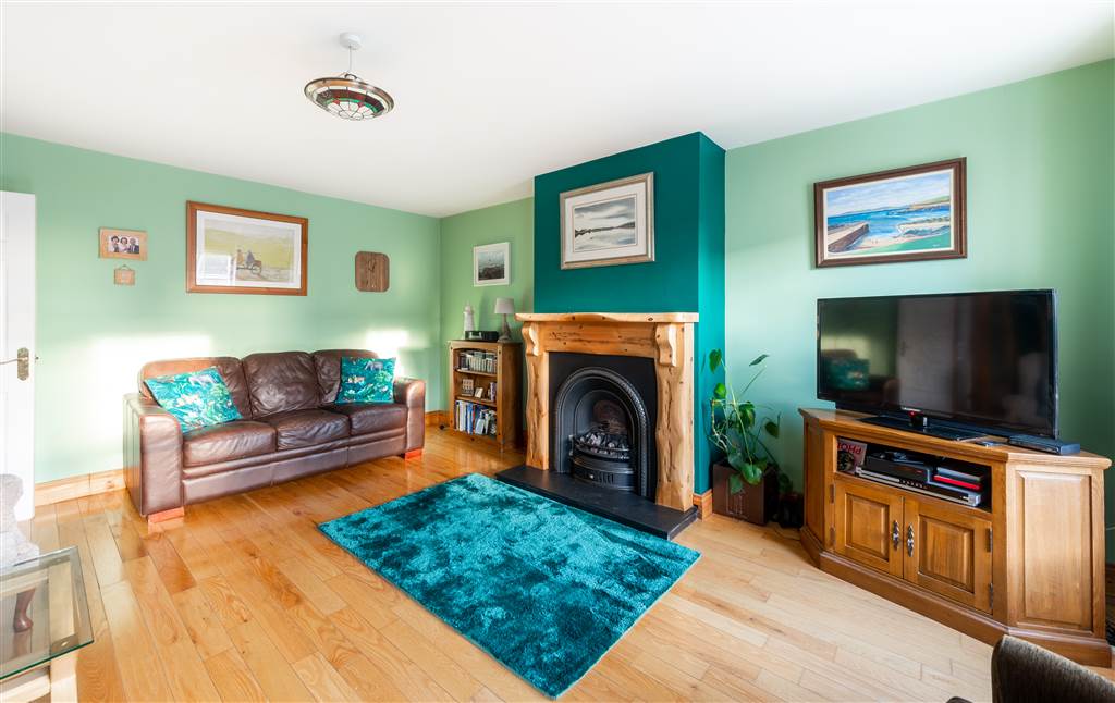 Solid wood flooring, attractive fireplace with wood surround & gas fire, ceramic hearth, double panelled radiator.