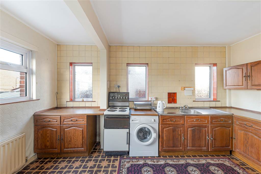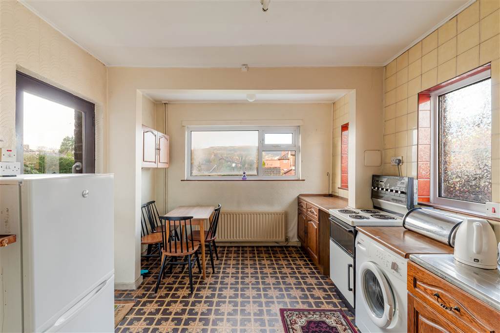 Excellent range of high and low level units, formica work surfaces, stainless steel sink unit with mixer taps, plumbed for washing machine, cooker space, fridge freezer space, double panelled radiator, partly tiled walls.