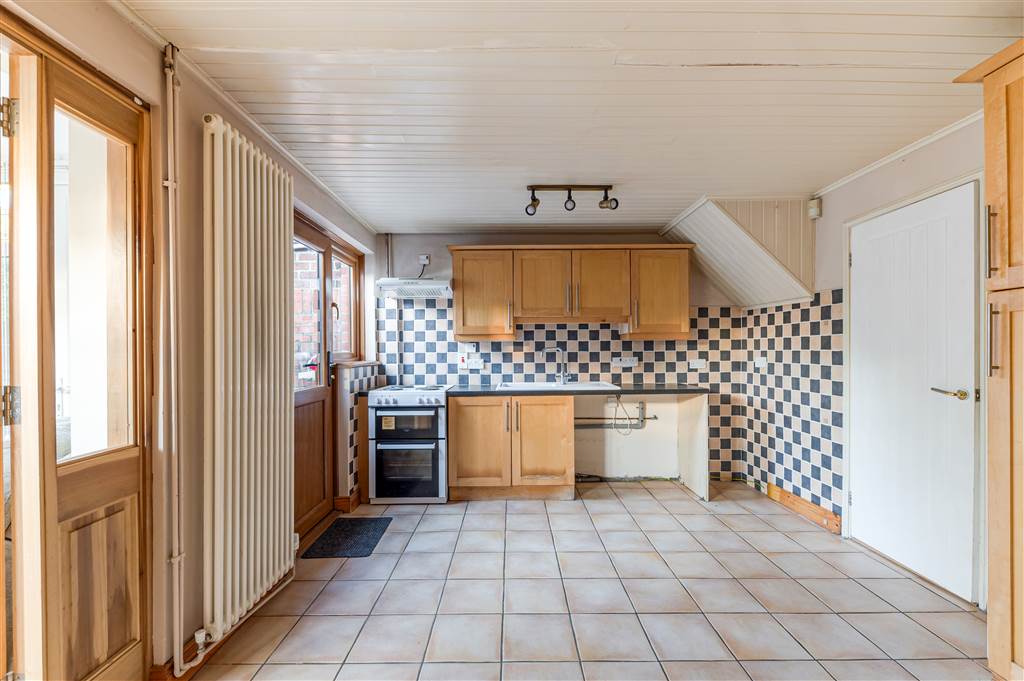 Excellent range of high and low level units, formica work surfaces, ceramic sink with mixer taps, plumbed for washing machine, tumble dryer space, fridge freezer space, glass display cupboards, partly tiled walls, ceramic tile flooring.