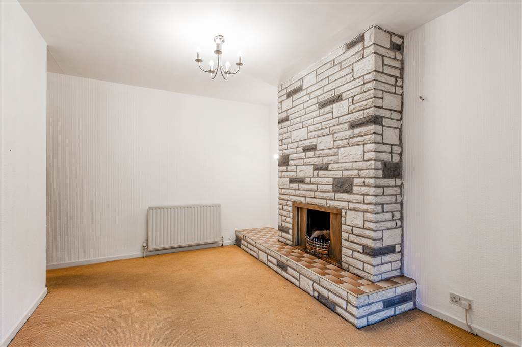 Brick fireplace, tiled inset and heath, open fire, double panelled radiator x2.
