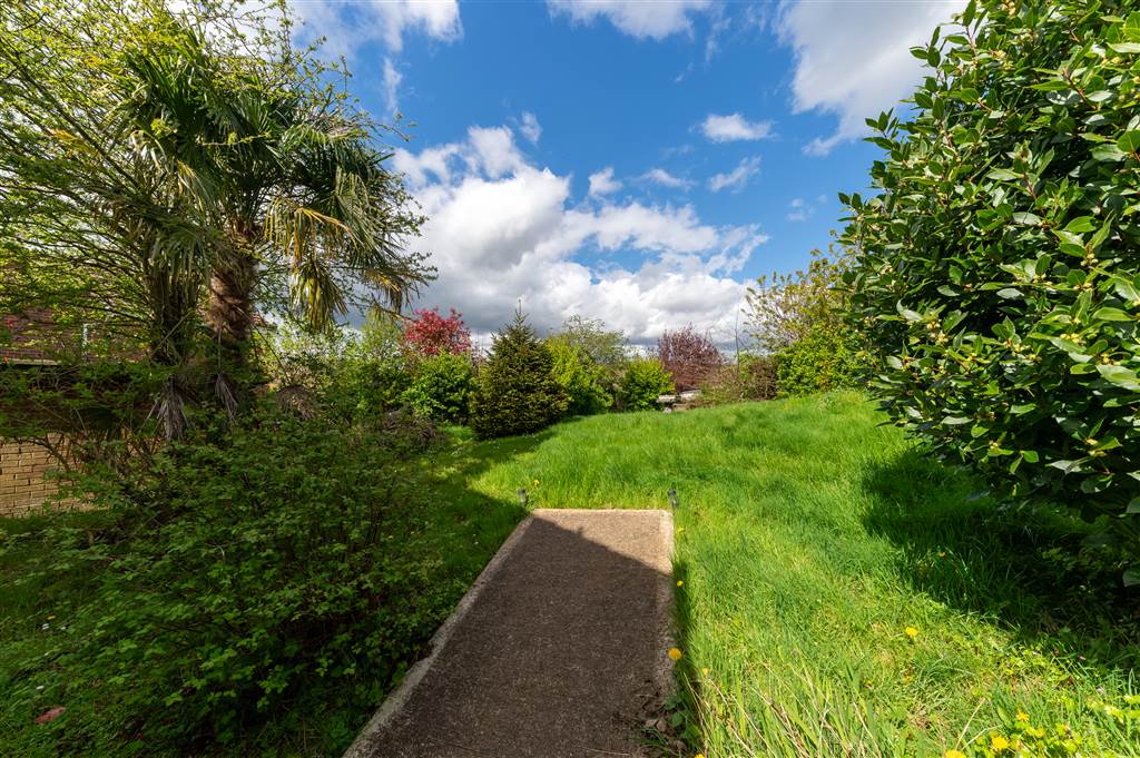 To the side & rear: Private enclosed garden laid in lawn, mature shrubs & trees, patio to rear, outside light & tap.