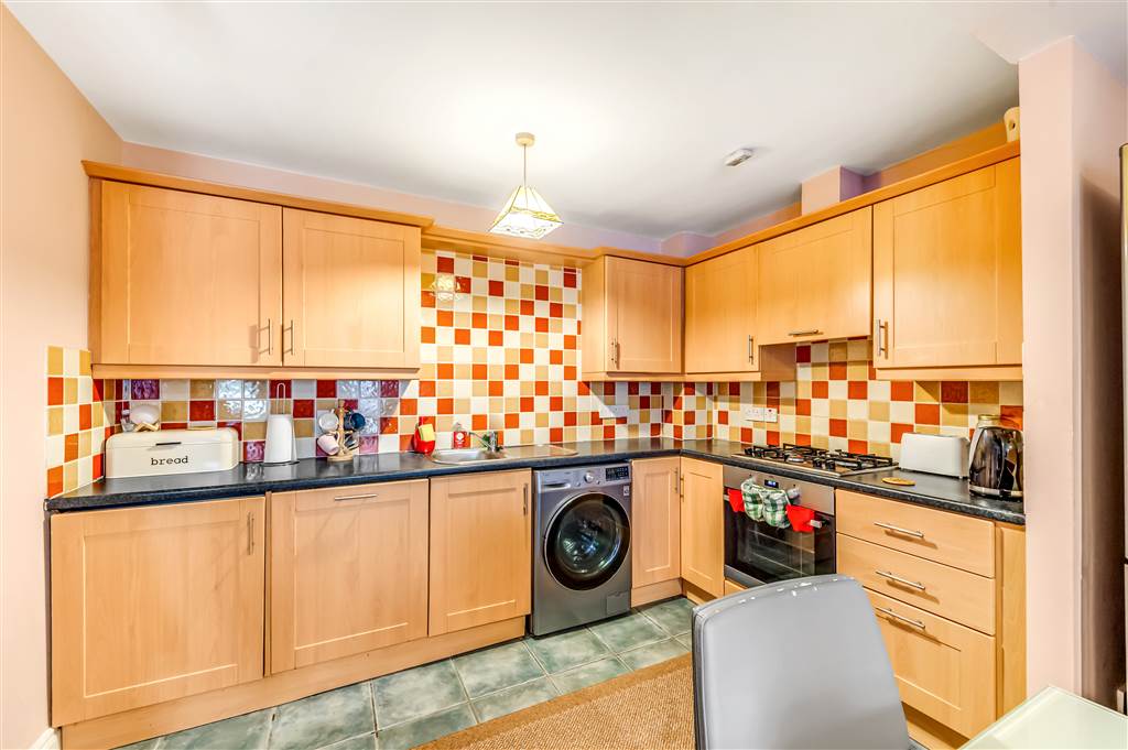 Excellent range of high and low level units, formica work surfaces, stainless steel sink unit with mixer taps, integrated dish washer, integrated fridge, plumbed for washing machine, 4 ring gas hob and electric oven, stainless steel extractor fan, partly tiled walls, ceramic tile flooring, double panelled radiator.