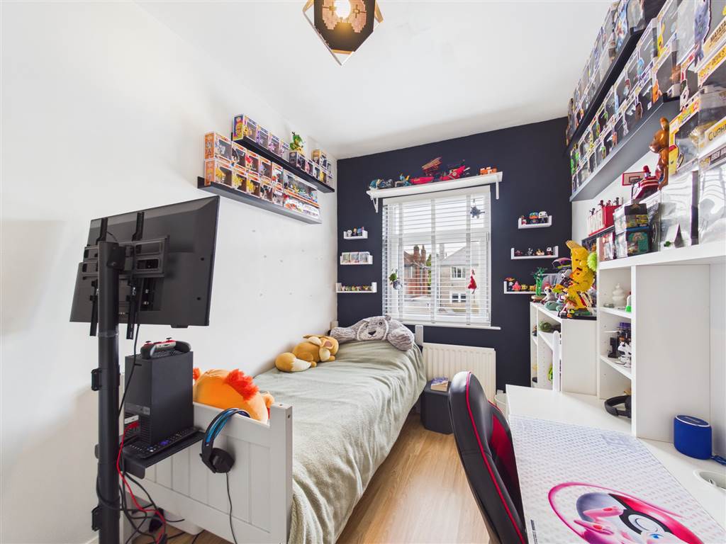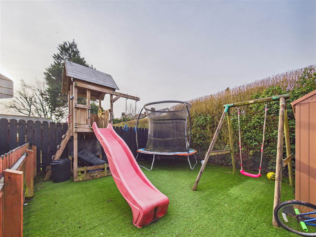 Tarmac drive with parking to front and side of the house. Enclosed rear garden with extensive area in porcelain paving, enclosed play area in astroturf, former detached garage 18' 3" x 8' 11" (5.56m x 2.72m) converted for use as a home office but easily adaptable as a games room etc.with heating and power.