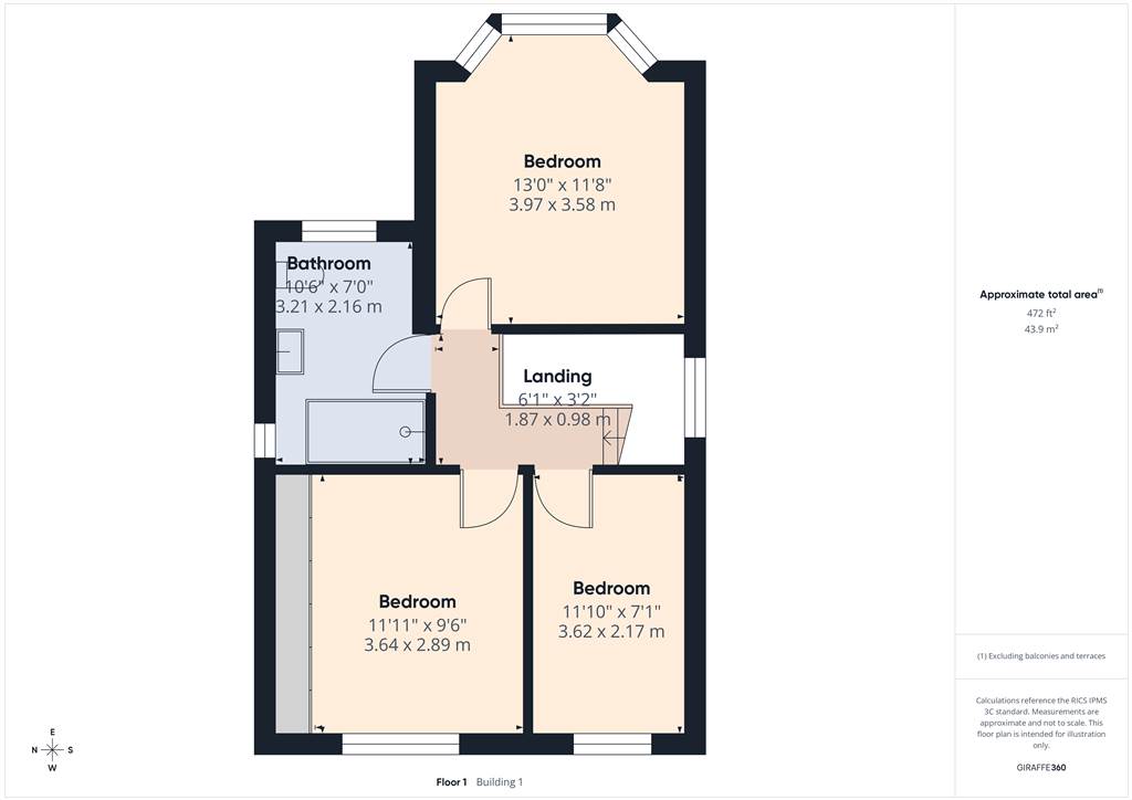 BEDROOM 3: 11' 10" X 6' 7" (3.60m X 2.00m)