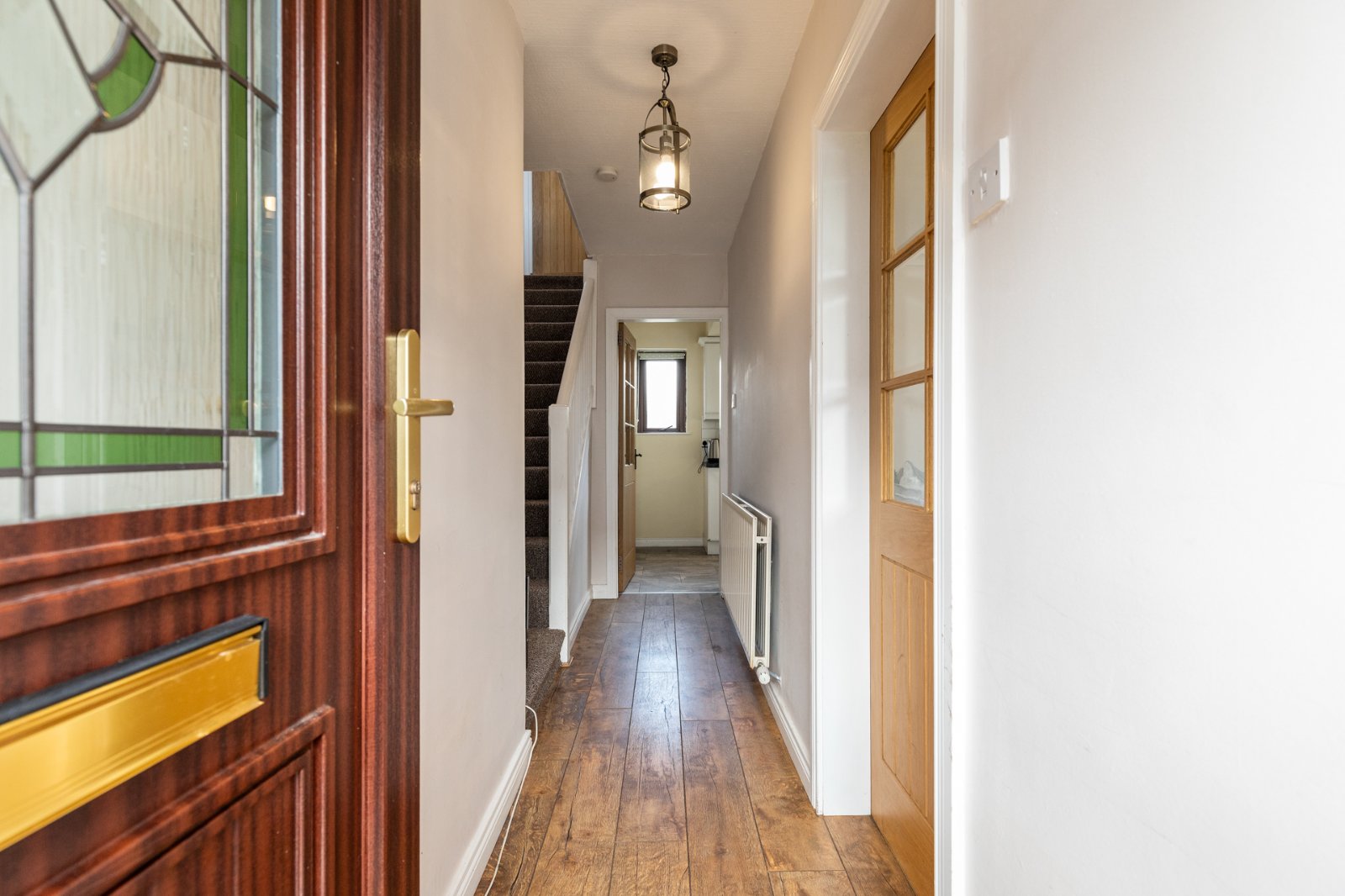 The accommodation briefly comprises a generous living room with cosy fireplace, separate kitchen with integrated appliances, a useful storage area in the rear hallway, three excellent bedrooms and modern shower room in addition to the fully tiled family bathroom. Outside are well-maintained gardens, enclosed to the rear with a sunny Westerly aspect.