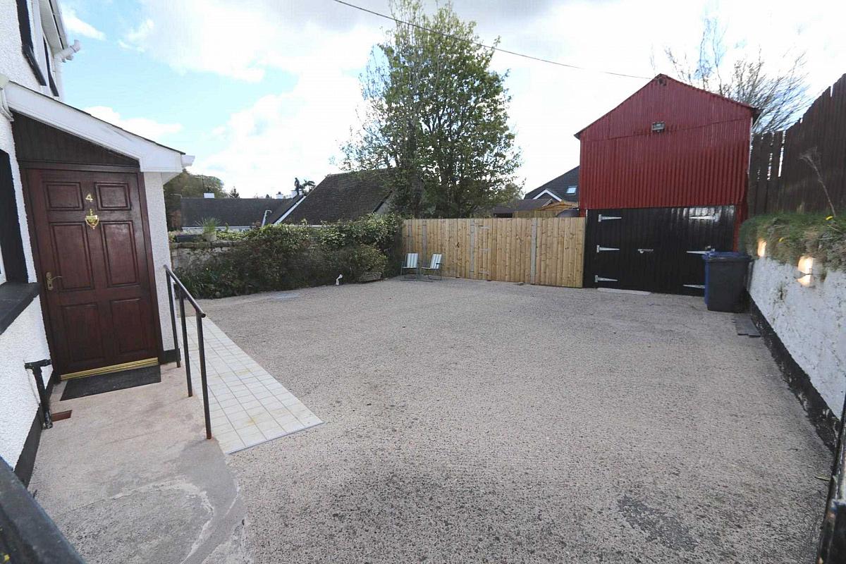To the rear, a spacious car parking area, a workshop with a loft, and an enclosed courtyard area provide both practicality and a sense of privacy. The property's side entrance features a full-height lockable metal gate, enhancing security and convenience.