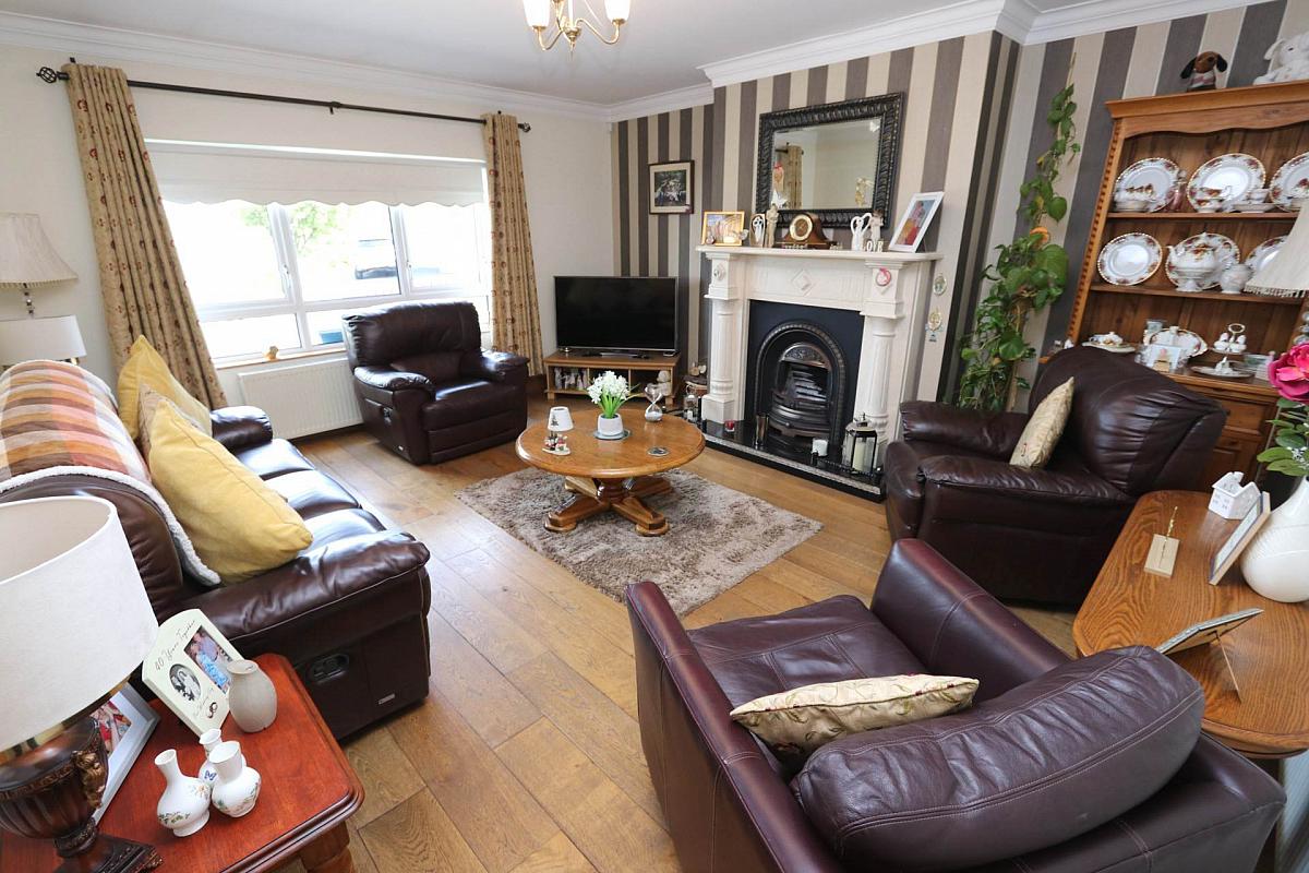 Set in a quiet cul-de-sac on an elevated, private site, this beautifully maintained three-bedroom bungalow offers a rare opportunity to enjoy peaceful living just a short stroll from the heart of Fivemiletown. Surrounded by mature trees and landscaped gardens, the home enjoys a serene setting while being within walking distance of shops, cafés, schools, and public transport links.
