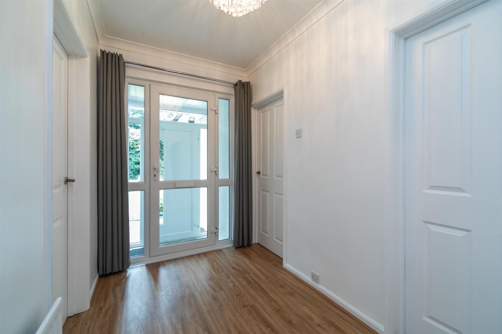 Upvc glass panelled front door with glazed side panels to entrance Porch. Pvc glass panelled inner door with glazed side panels to entrance hall. Built in storage. Laminate flooring.