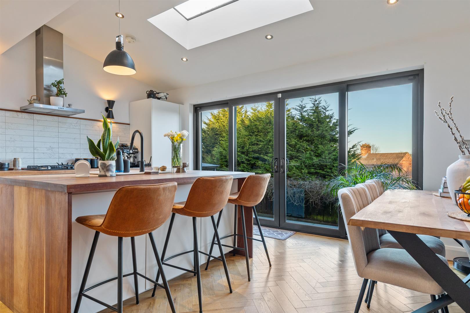 Bright and spacious, the accommodation comprises lounge to the front with a period fireplace, plaster moulding and ceiling rose, extended fitted kitchen / dining / living with walnut topped centre island and glazed sliding door providing access to the patio area overlooking the rear garden.