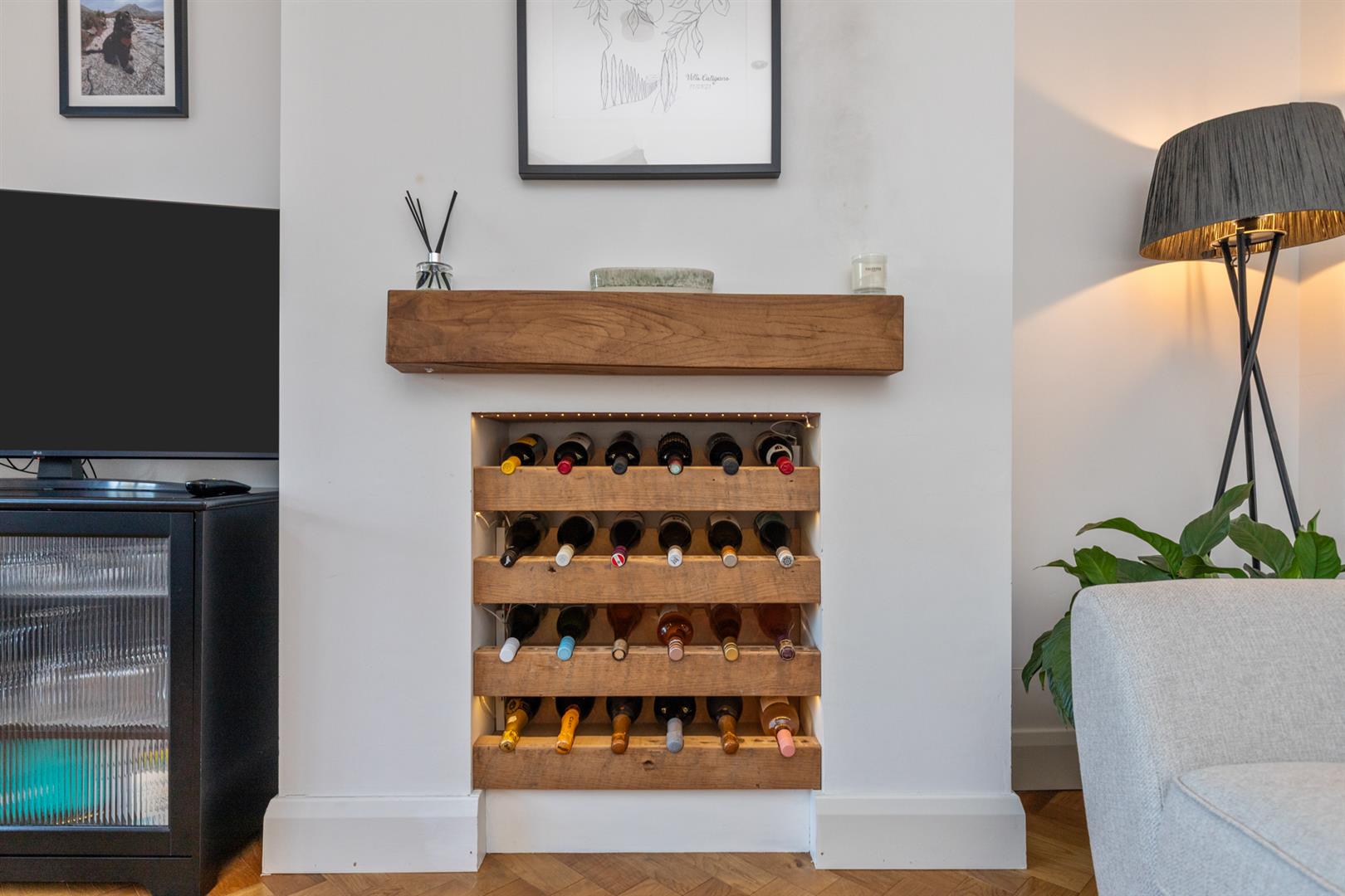 Tiled fireplace with wooden surround. Oak flooring in herringbone style. Picture rail. Cornice ceiling.