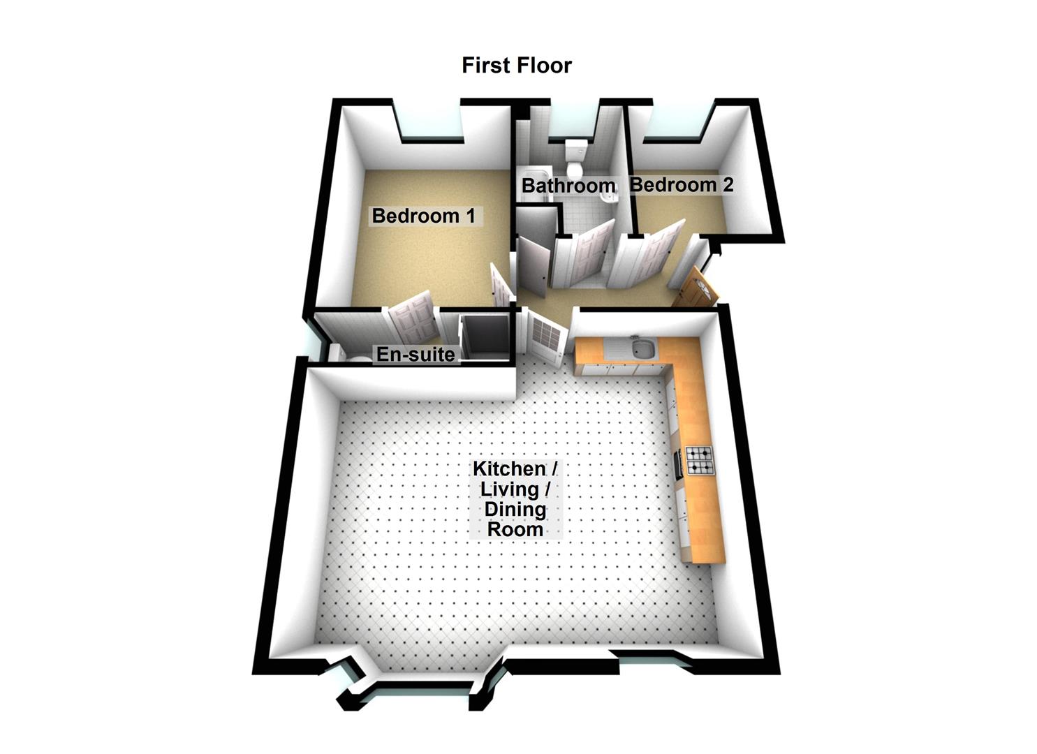 Internally the property comprises of a spacious lounge / dining area open to a modern fitted kitchen, two good sized bedrooms, master with ensuite, a separate white bathroom suite.