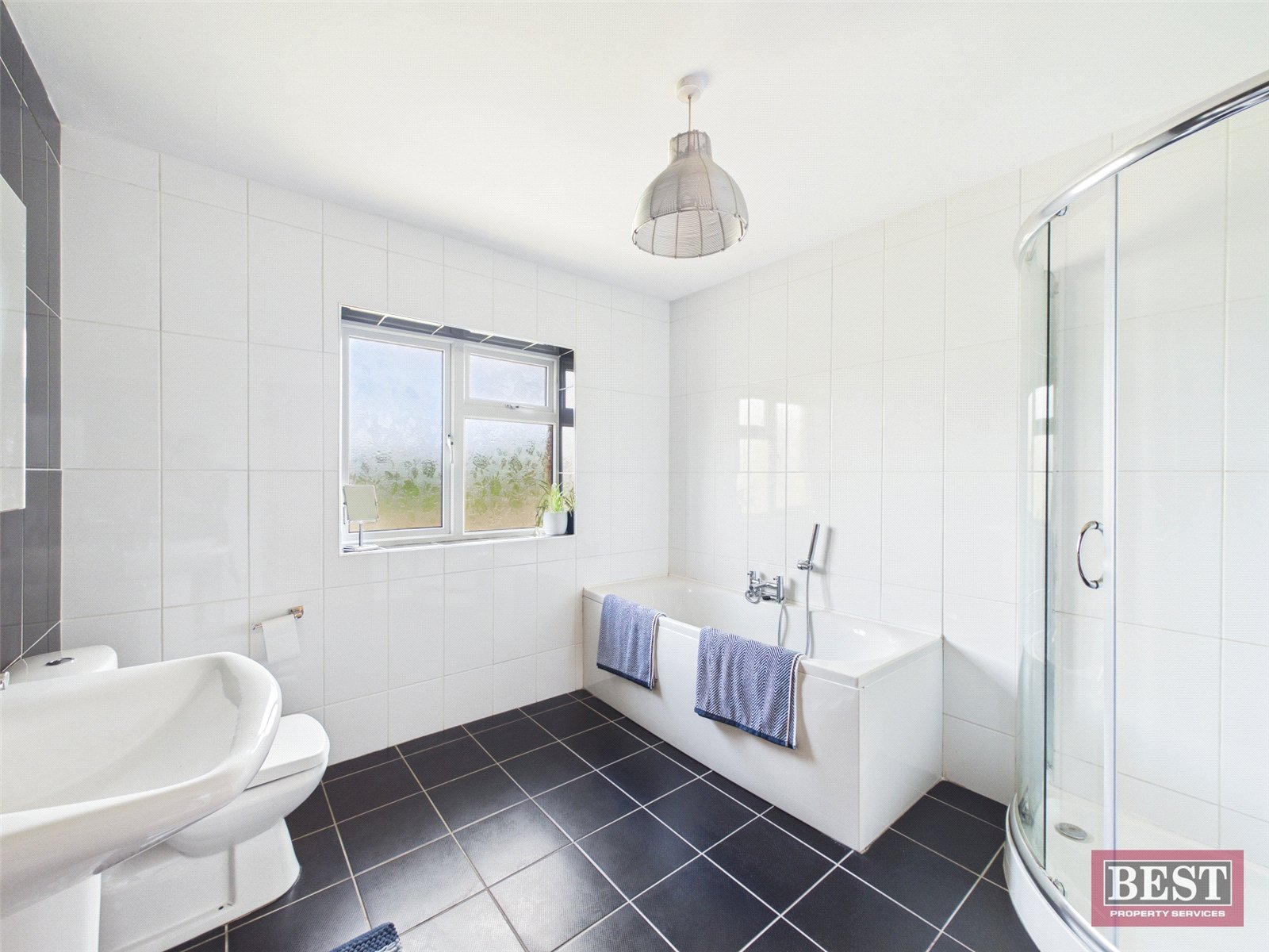 The family bathroom is fully tiled and fitted with a bath, separate shower cubicle, WC and wash hand basin.