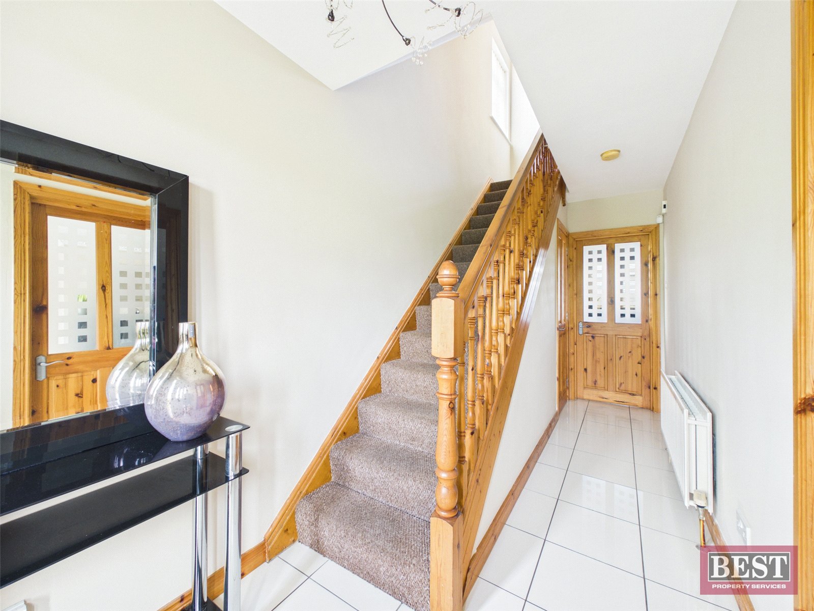 Upstairs, the landing is carpeted and benefits from a hotpress and access to the roofspace. There are two well proportioned double bedrooms and one single bedroom, all finished with carpeted flooring.