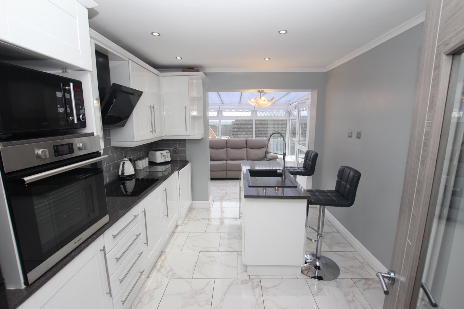 Superb range of high and low level units with complimentary worktop surfaces. Built in induction hob with bespoke extractor fan overhead. Integrated appliances to include oven, microwave, fridge freezer and dishwasher. Matching breakfast island with recessed composite sink with flexi mixer tap. Finished with tiled flooring and tiled splashback areas. Open plan access to conservatory.