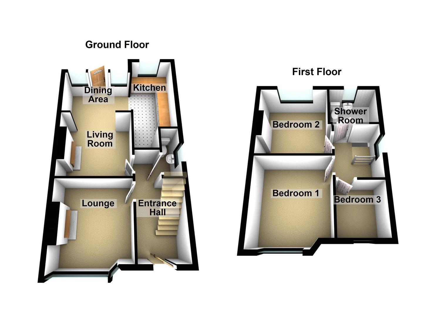 Internally the property comprises of three bedrooms, two reception rooms, downstairs w/c, extended dining area to fitted kitchen and white shower suite on first floor.
