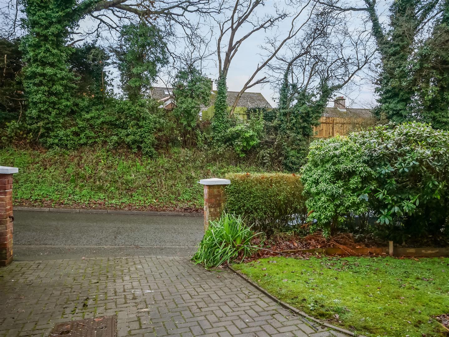 Front garden laid in lawns.