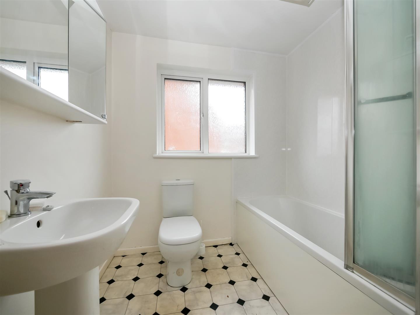 White suite comprising panelled bath, mixer taps, Mira Vie shower, low flush w/c, pedestal wash hand basin.
