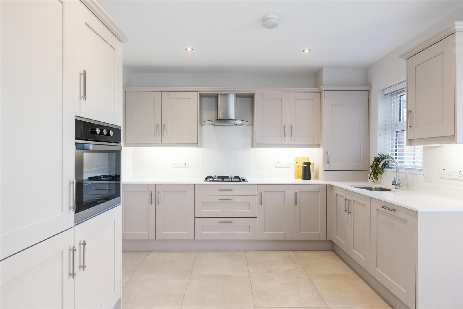 Fantastic range of fitted units with integrated appliances to include gas hob with extractor fan, electric grill / oven, integrated dishwasher and fridge freezer. Ceramic tiled floor.
